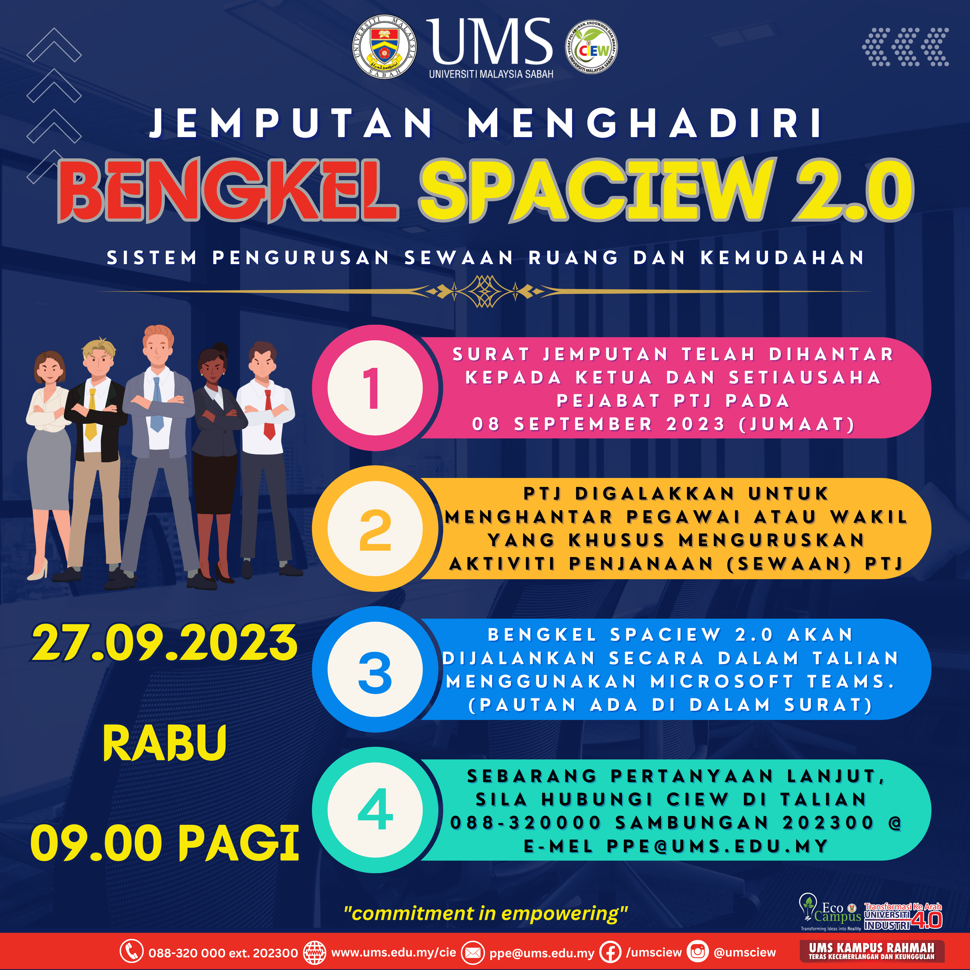 | Surat Jemputan Menghadiri Bengkel SPACIEW 2.0 (Sistem Pengurusan Sewaan Ruang Dan Kemudahan), Universiti Malaysia Sabah |