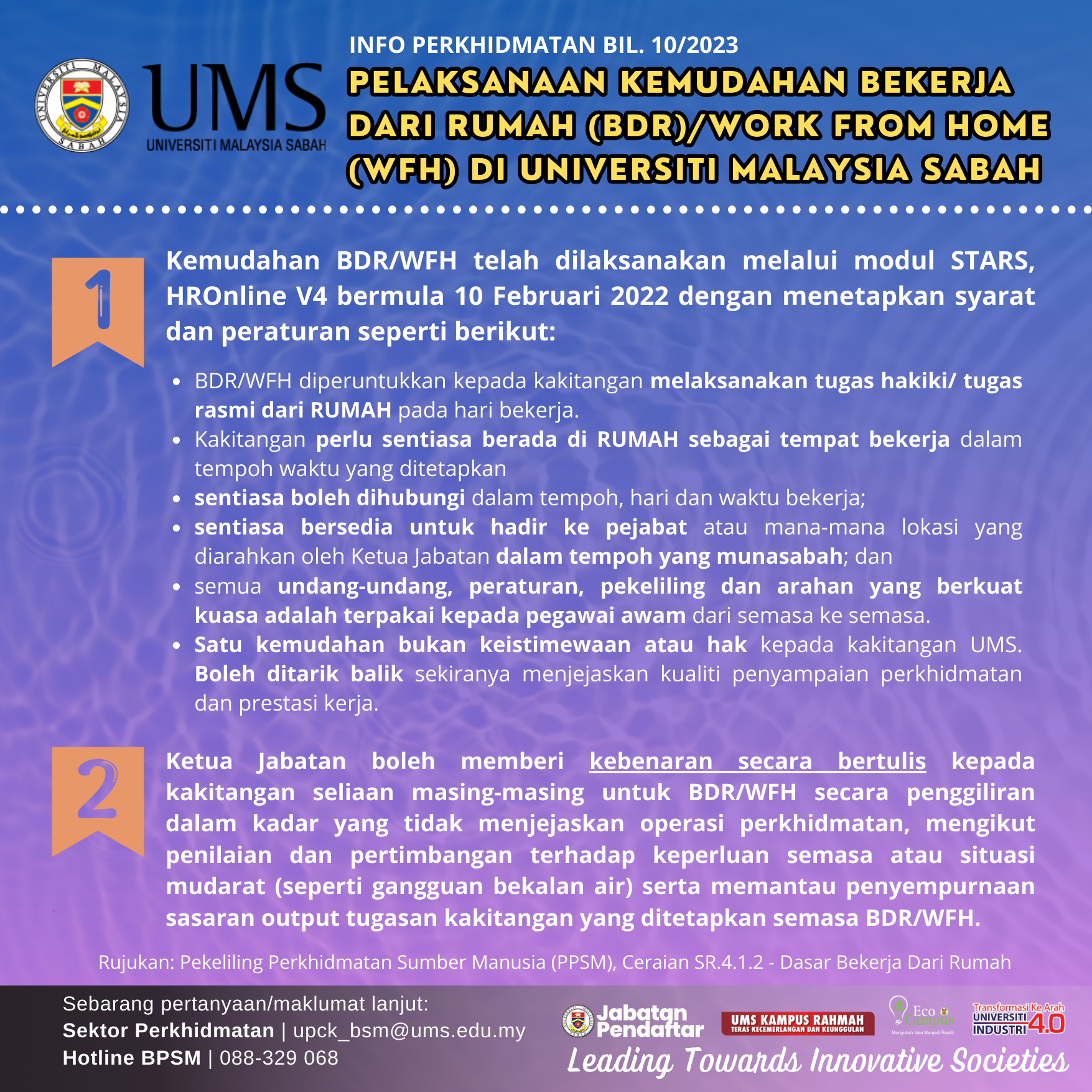 Pelaksanaan Kemudahan Bekerja dari Rumah (BDR) / Work from Home (WFH) di Universiti Malaysia Sabah
