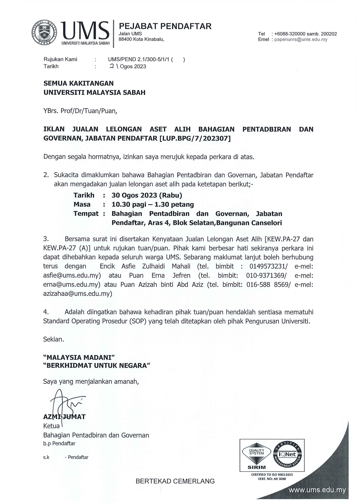 Pengumuman Daripada: Pusat Jaminan Kualiti
