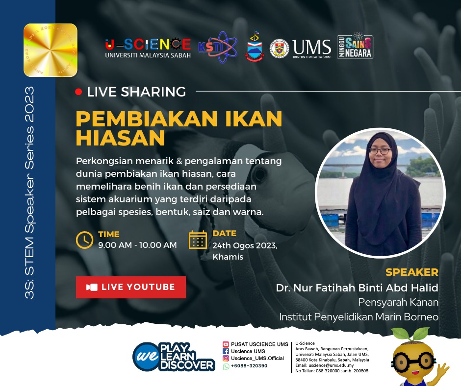 Anjuran U-Science UMS dengan sokongan penuh Kementerian Sains, Teknologi dan Inovasi (KSTI) Sabah.