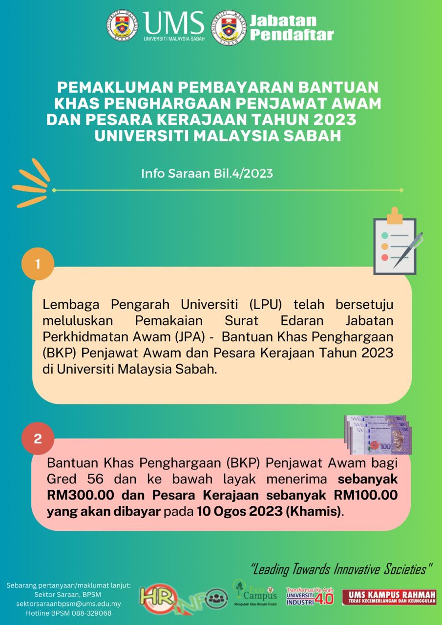 Pengumuman Daripada: Bahagian Pengurusan Sumber Manusia (BPSM), Jabatan Pendaftar
