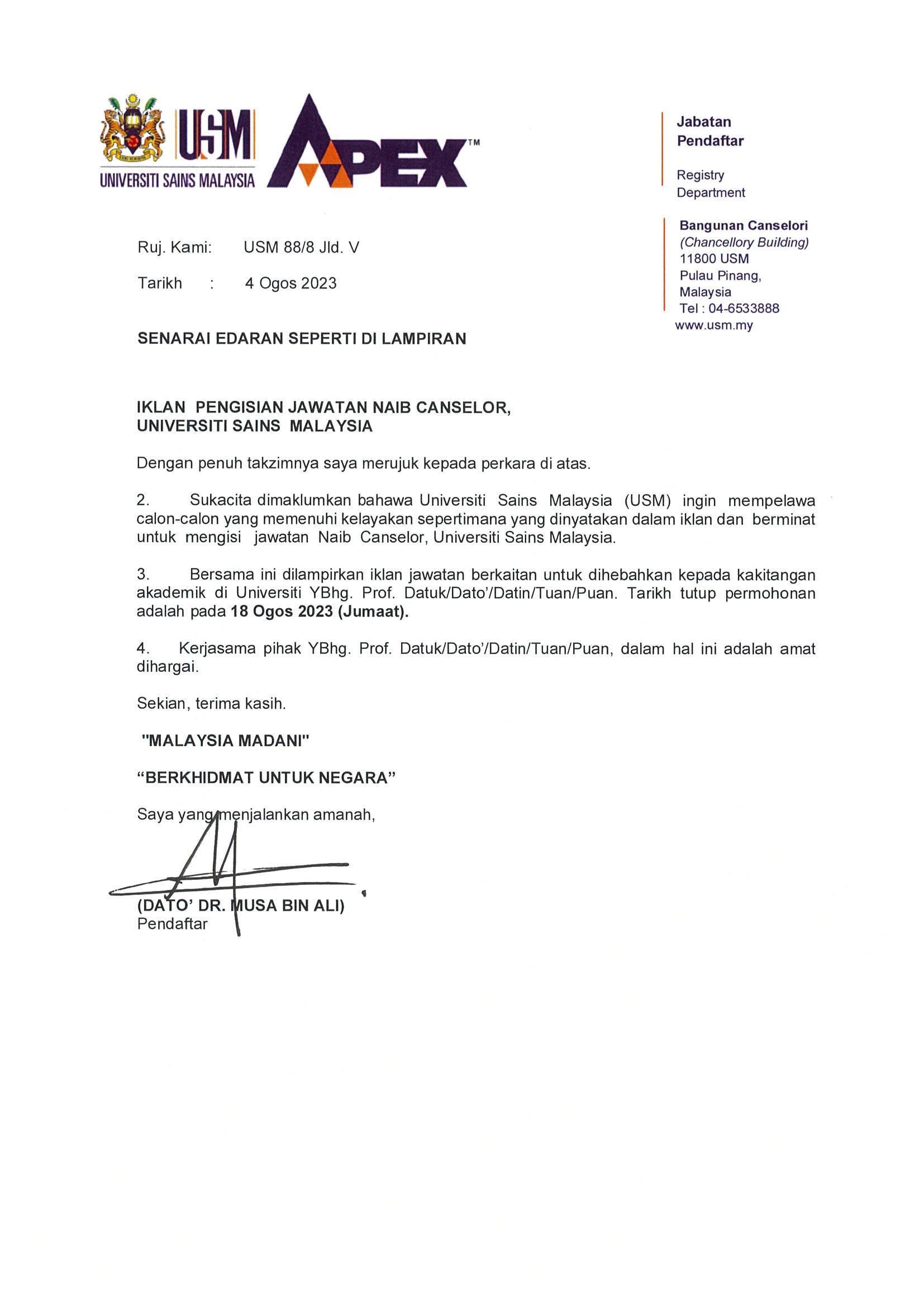 Pengumuman Daripada: Unit Kualiti, Pejabat Canselori