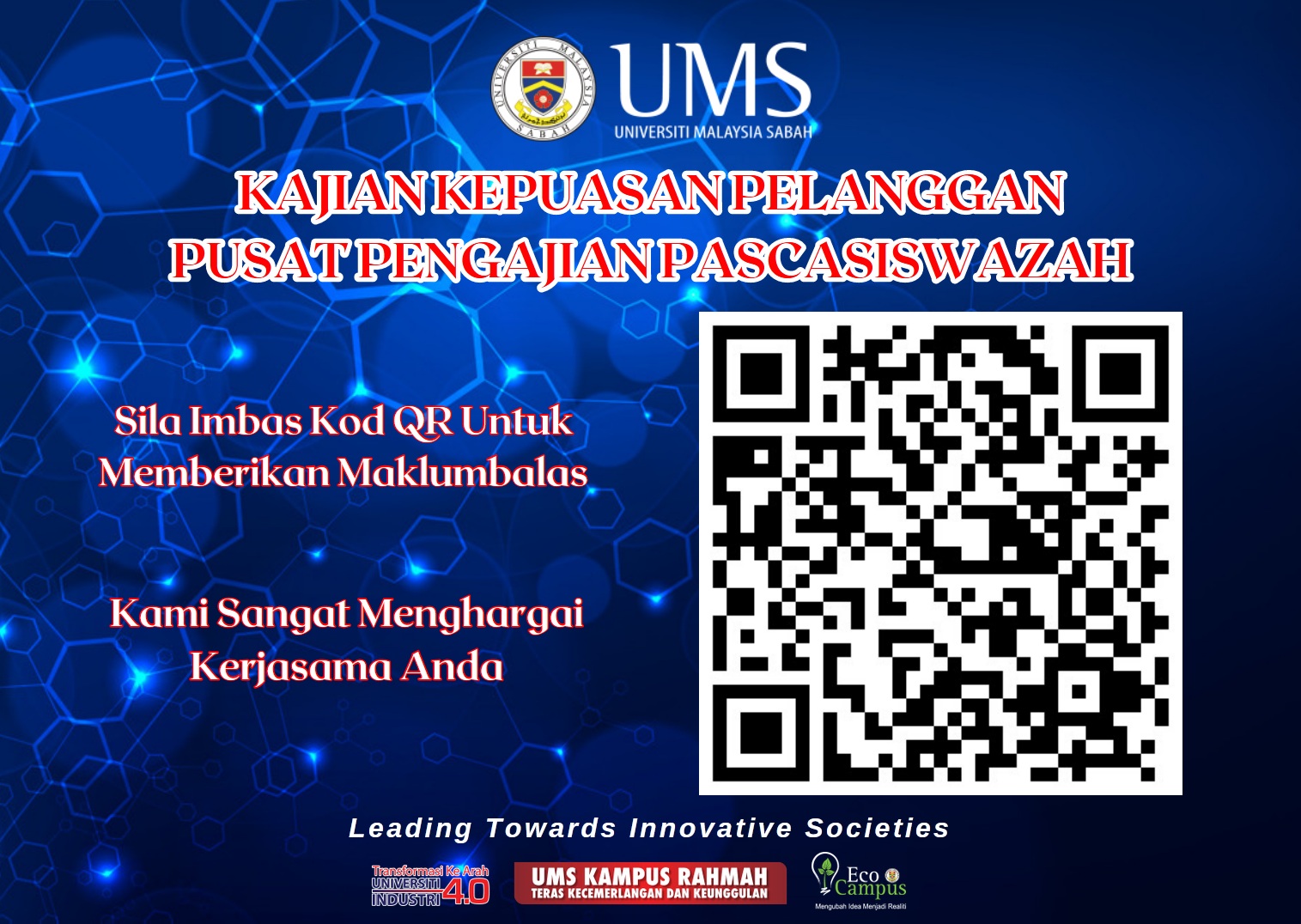 Adalah dimaklumkan bahawa, Pusat Pengajian Pascasiswazah UMS sedang melaksanakan kajian kepuasan pelanggan bagi meningkatkan mutu dan kualiti perkhidmatan kami dari semasa ke semasa.