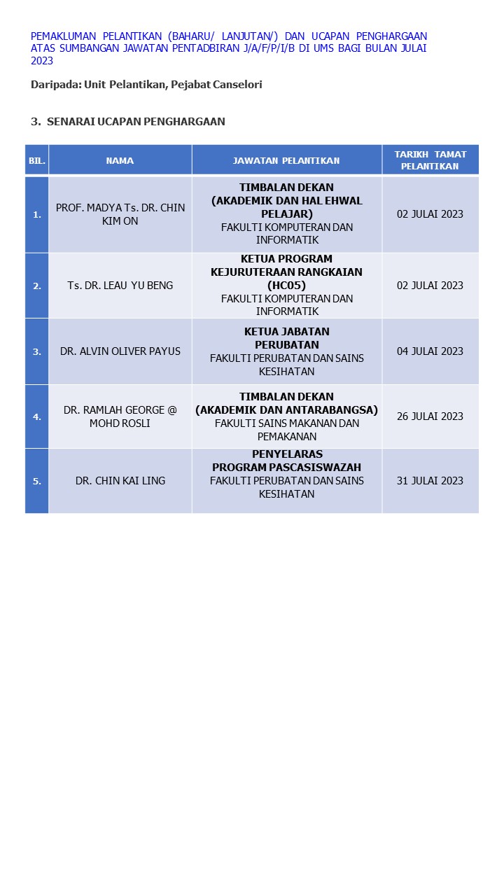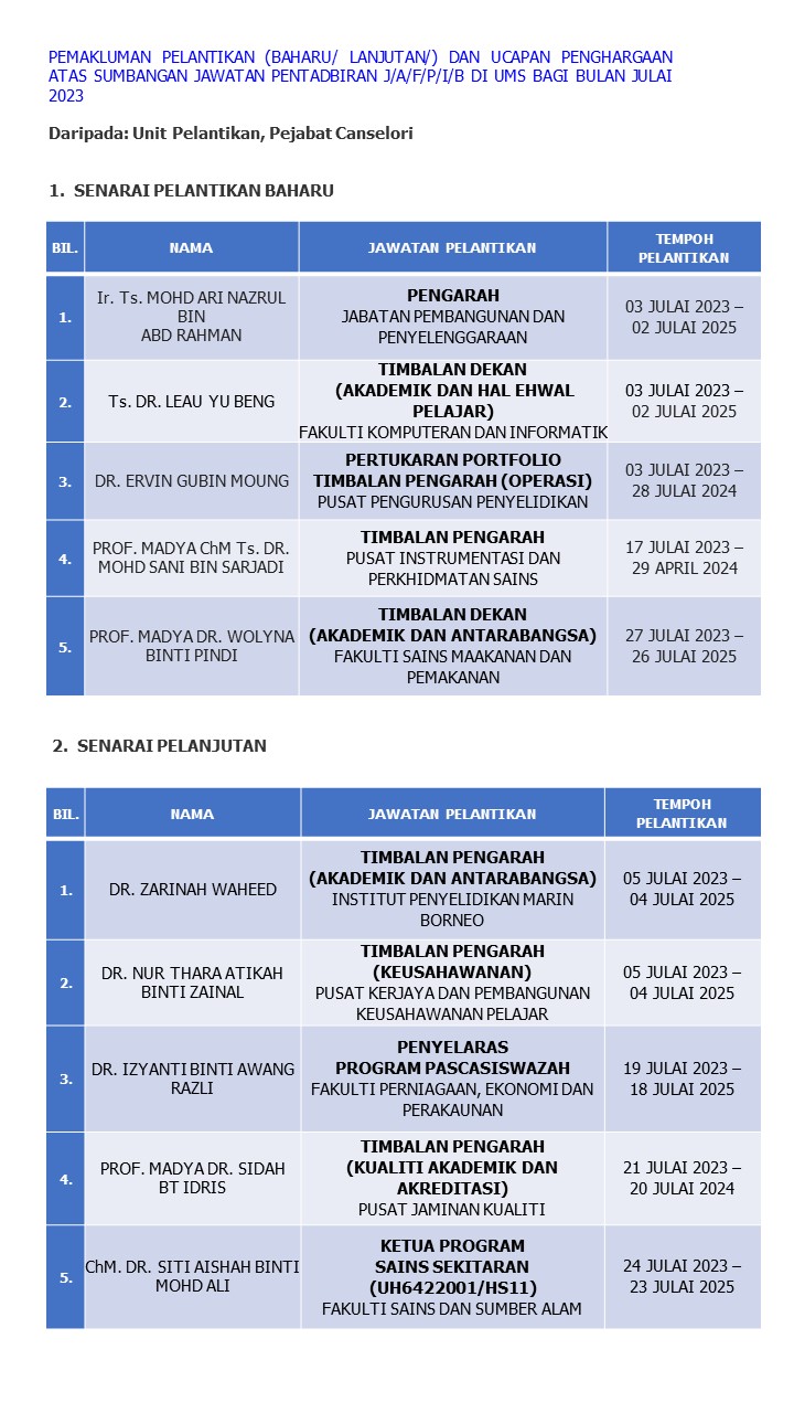 Pengumuman Daripada: Unit Pelantikan, Pejabat Canselori