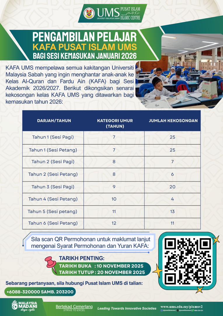 Pengumuman Daripada: Bahagian Pendidikan dan Zakat, Pusat Islam UMS
