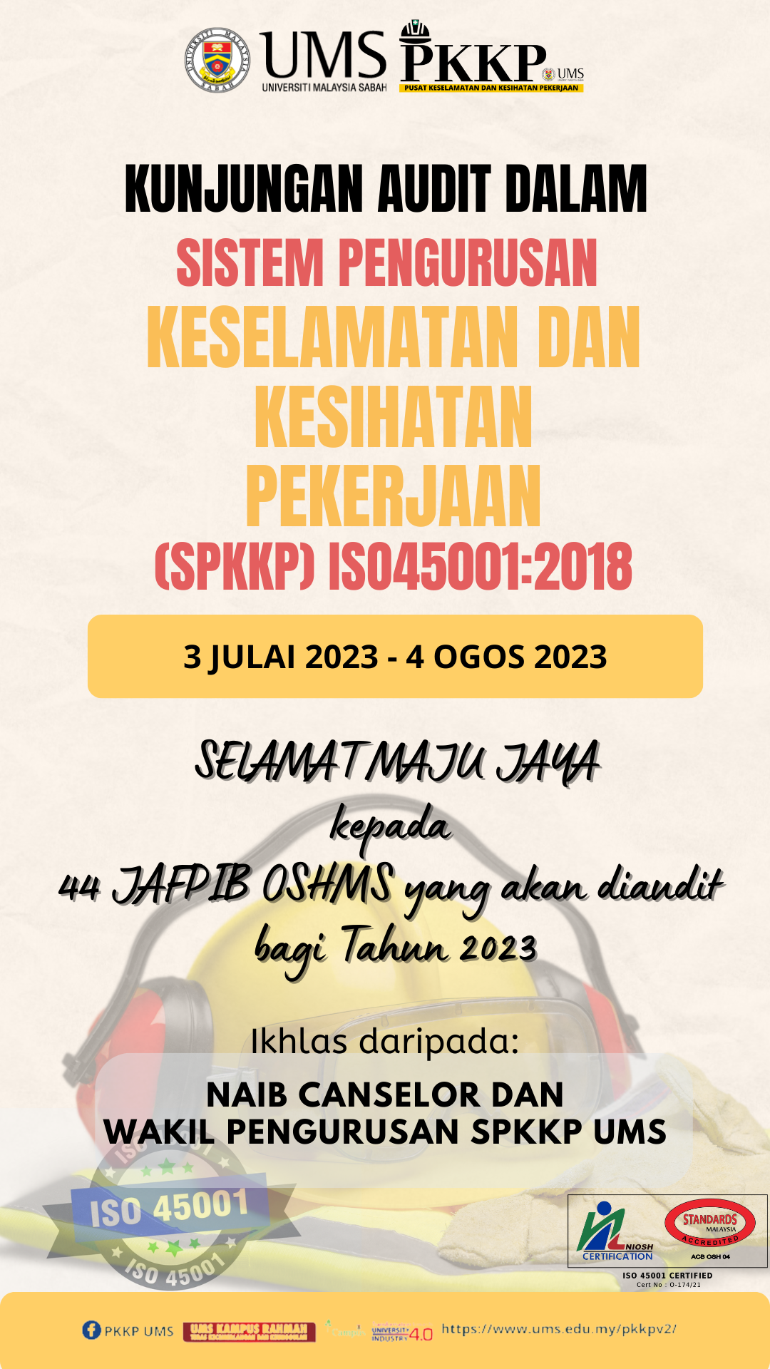 Borang Pendaftaran Kursus Latihan Pengendali Makanan SLPM UMS 2023: https://forms.office.com/r/w0TJJB5gPA