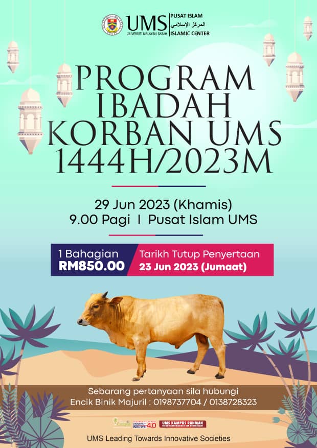 02. Sukacita dimaklumkan bahawa, Pusat Islam Universiti Malaysia Sabah (PIUMS) akan mengadakan Program Ibadah Korban pada ketetapan berikut:-