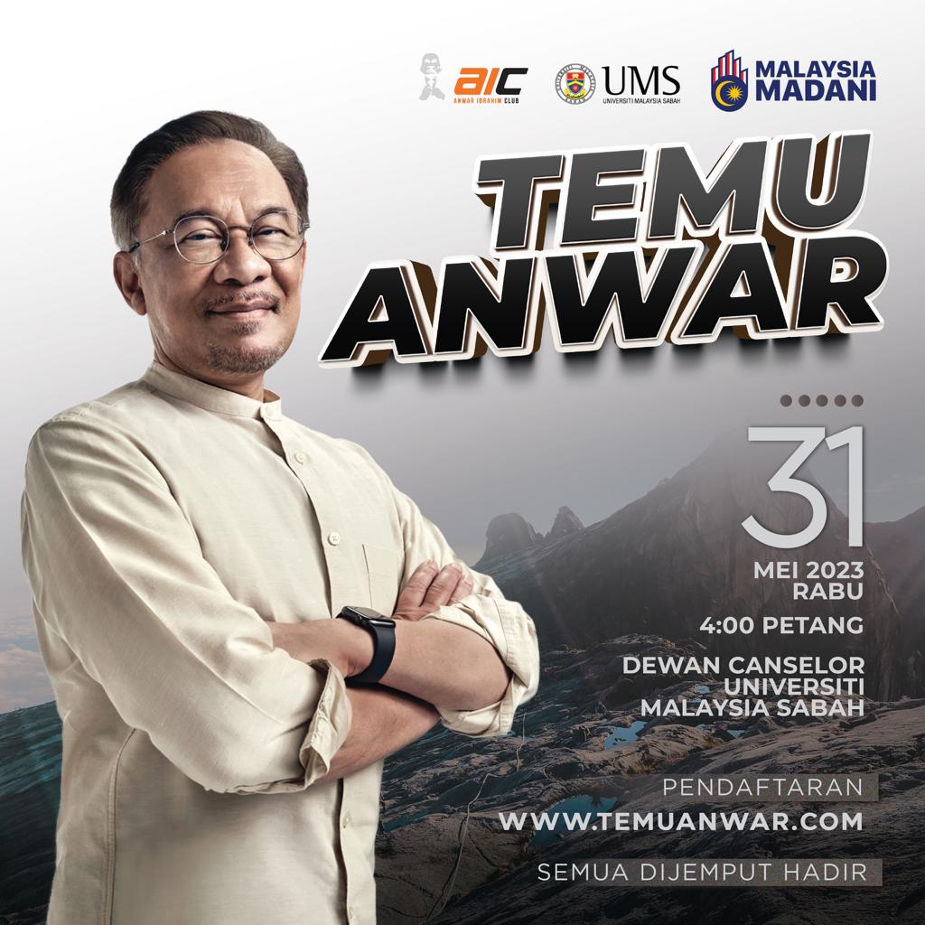 2. Sukacita dimaklumkan Majlis Temu Anwar @ UMS Kota Kinabalu yang akan berlangsung di Universiti Malaysia Sabah adalah merupakan program bual bicara bersama YAB Datuk Seri Panglima Anwar Ibrahim, Perdana Menteri Malaysia.