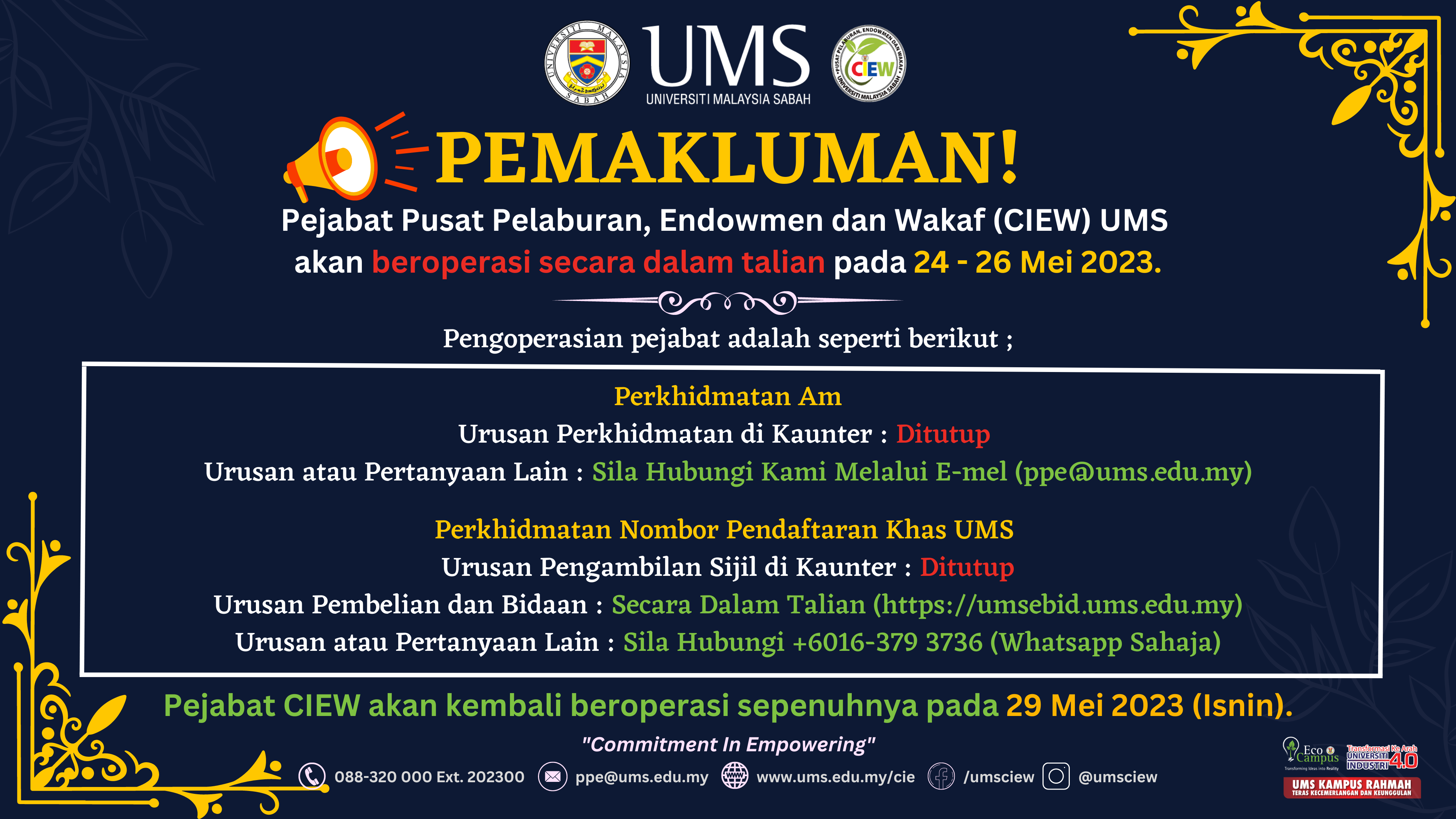 Pengumuman Daripada: Pusat Pelaburan, Endowmen Dan Wakaf (CIEW)