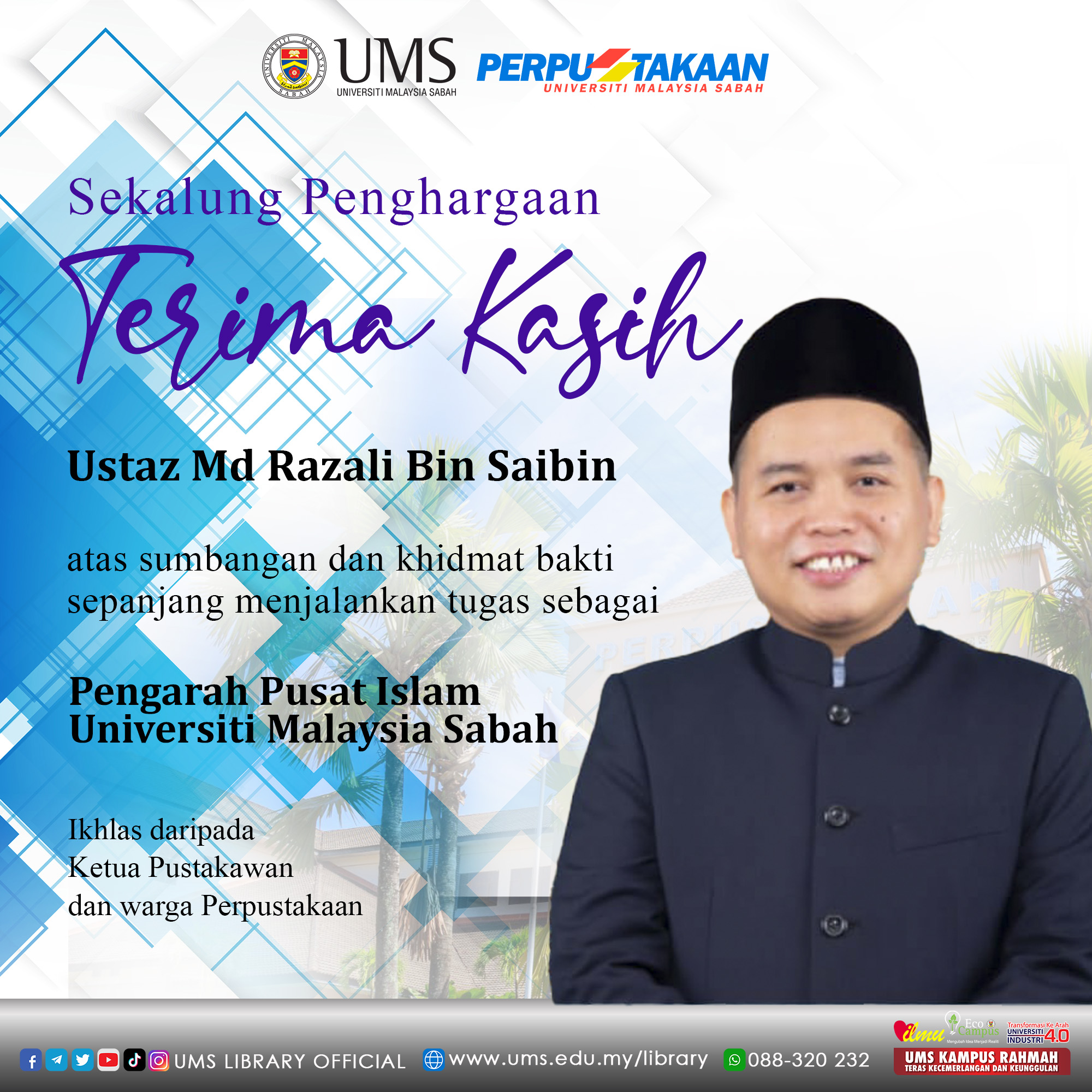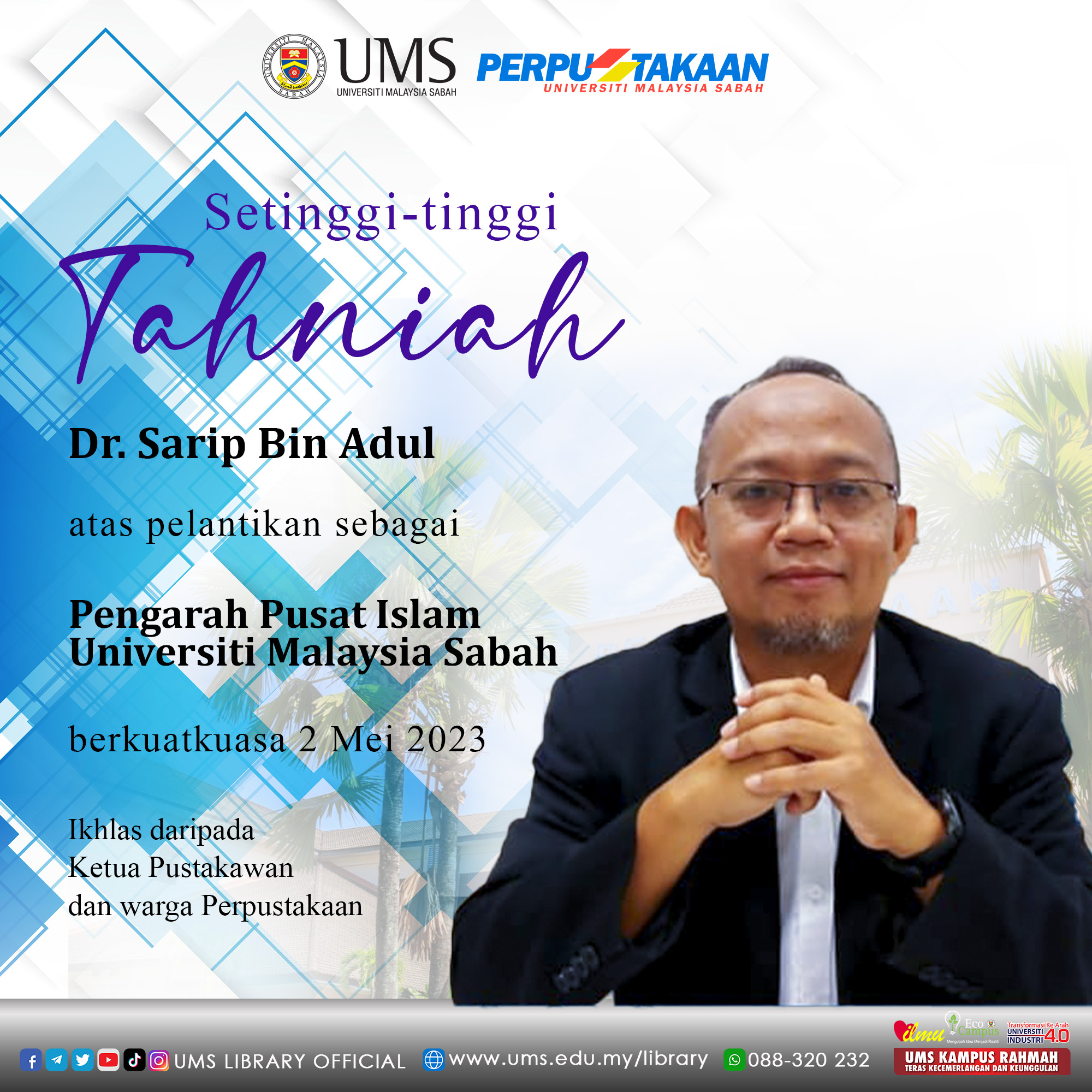Seluruh warga UMS adalah dijemput untuk menghadiri Public Talk ini. Kehadiran secara bersemuka adalah terhad kepada 200 orang sahaja dan boleh juga dihadiri secara atas talian di laman rasmi FB @UMS.official.
