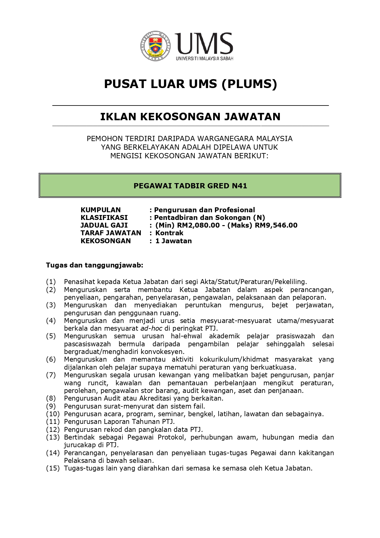 Pengumuman Daripada: Pusat Luar UMS