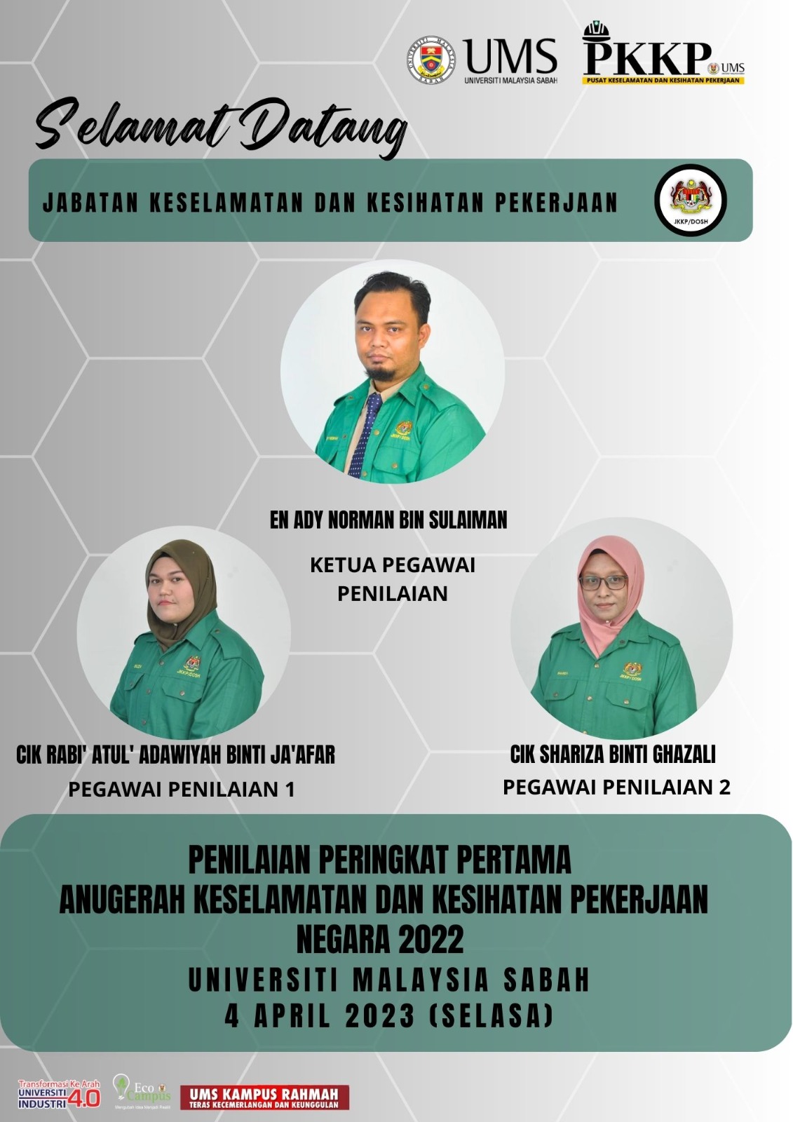 Sehubungan itu, selaras dengan keperluan peruntukan Akta Keselamatan dan Kesihatan Pekerjaan 1994 dan keperluan SPKKP, Dasar KKP perlu dikomunikasikan kepada semua kakitangan UMS, Justeru, dimohon semua kakitangan untuk membaca dan memahami kandungan Dasar Keselamatan dan Kesihatan Pekerjaan UMS yang diedarkan melalui surat PKKP dengan rujukan UMS/PKKP2.5/500-6/3/1 bertarikh 31 Mac 2023 kepada semua Ketua JAFPIB.