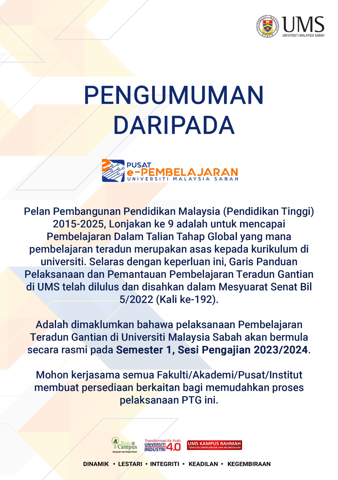 Pengumuman Daripada: Pusat E-Pembelajaran