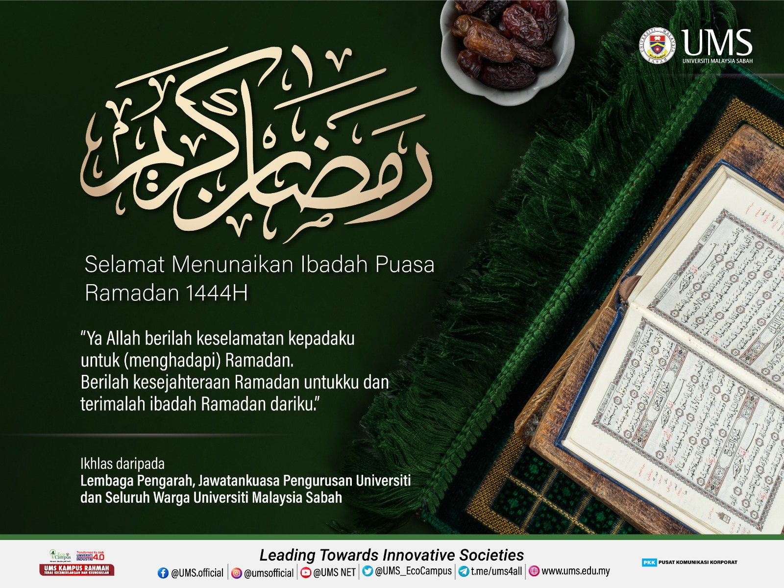 Bersempena dengan kedatangan bulan Ramadan yang mulia ini, Pusat Islam UMS ingin berkongsi amalan-amalan pada bulan Ramadan yang boleh dimuat turun melalui pautan berikut: