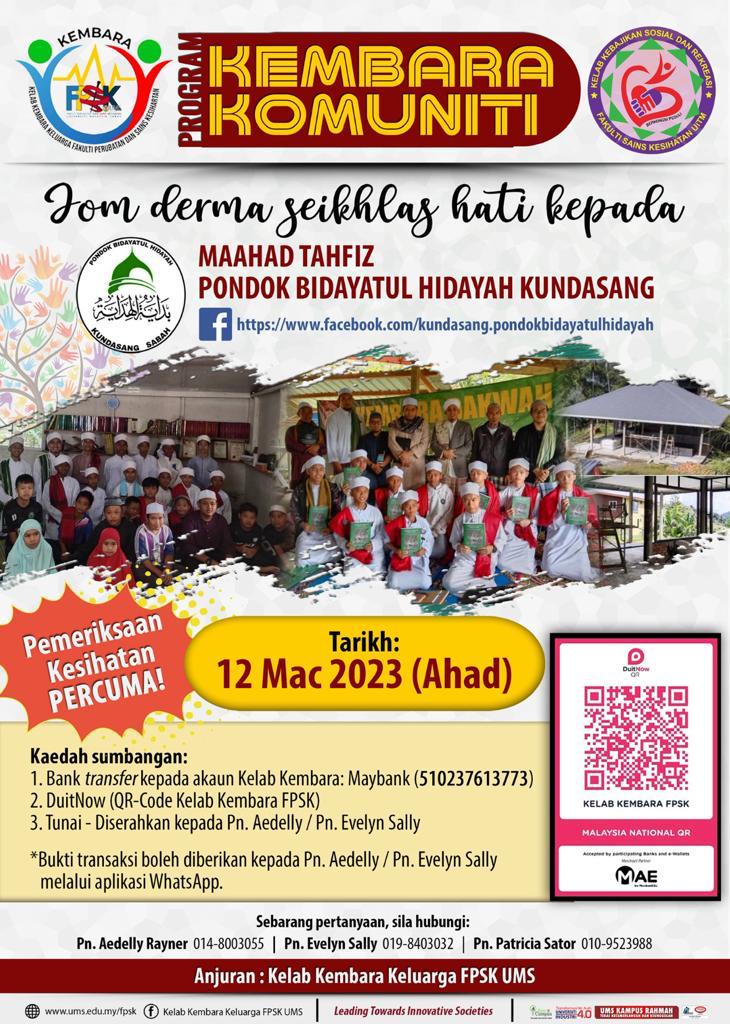 Program kolaborasi antara Kelab Kembara Keluarga Perubatan, Fakulti Perubatan dan Sains Kesihatan UMS dan Kelab Kebajikan Sosial dan Rekreasi, Fakulti Sains Kesihatan UiTM, JOM bantu kami bagi membantu mereka yang memerlukan. Sumbangan anda amatlah kami hargai.