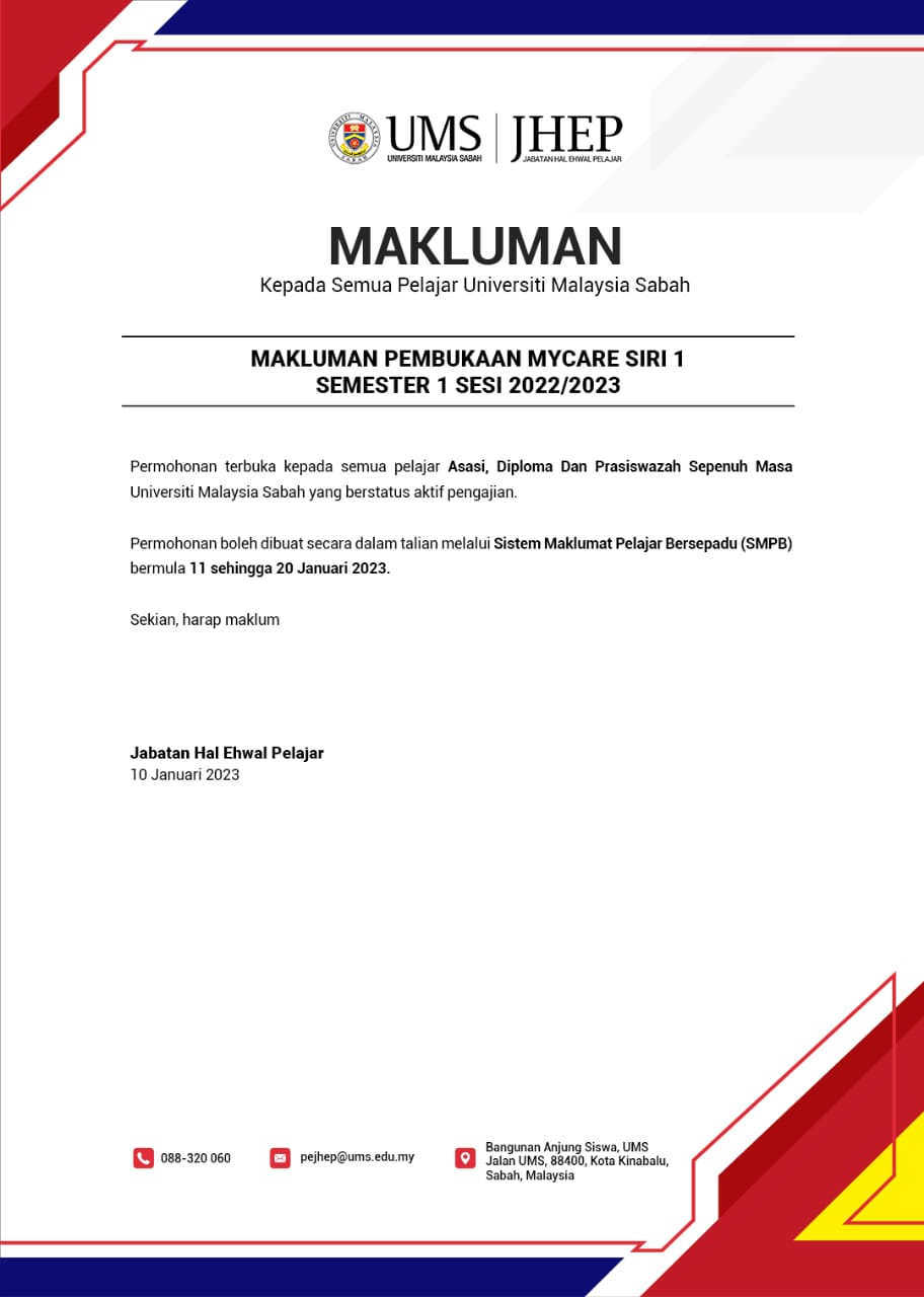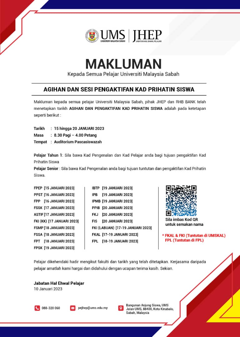 Pengumuman Daripada: Jabatan Hal Ehwal Pelajar
