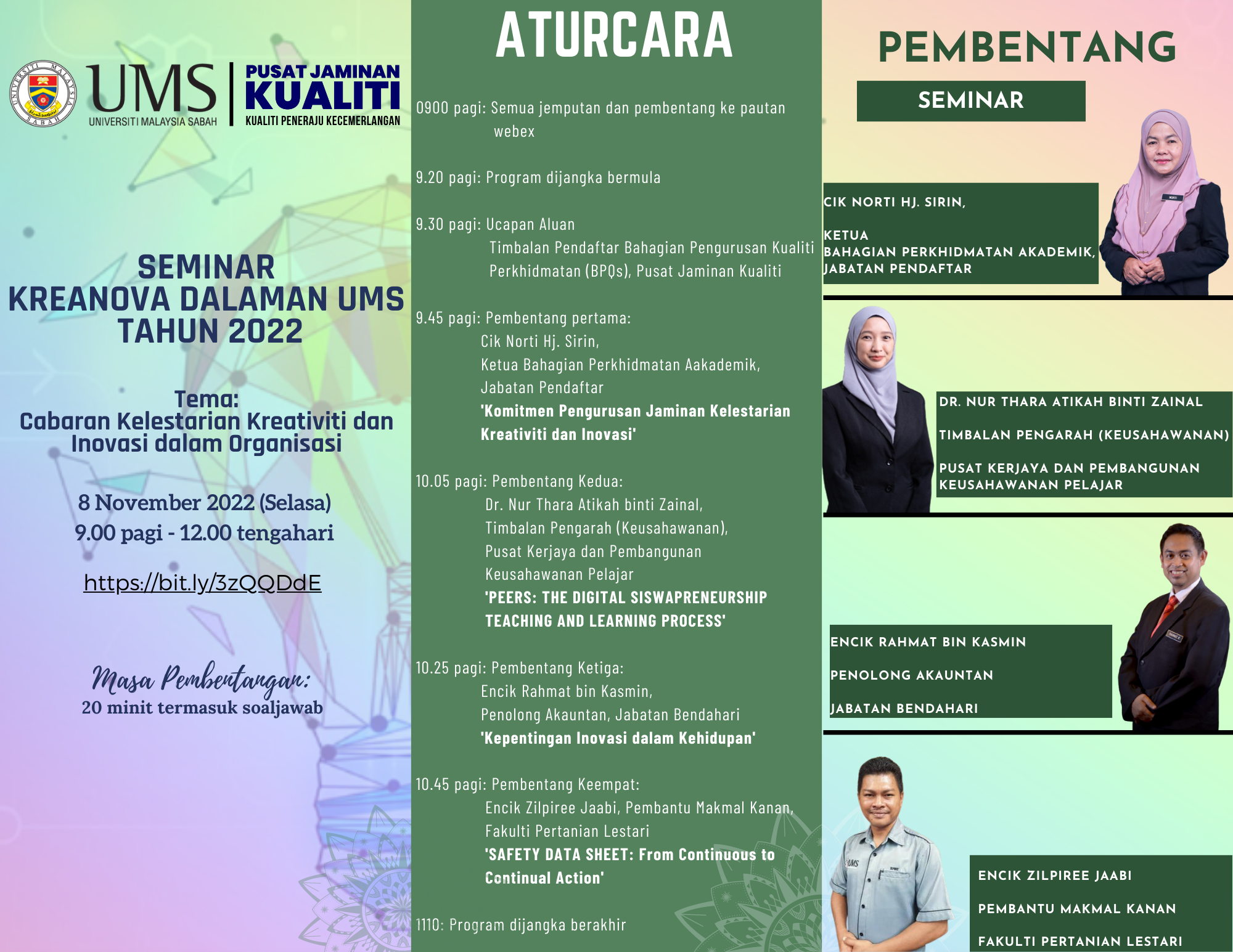 Secara dalam talian (aplikasi MS Teams) link: http://shorturl.at/aceO9