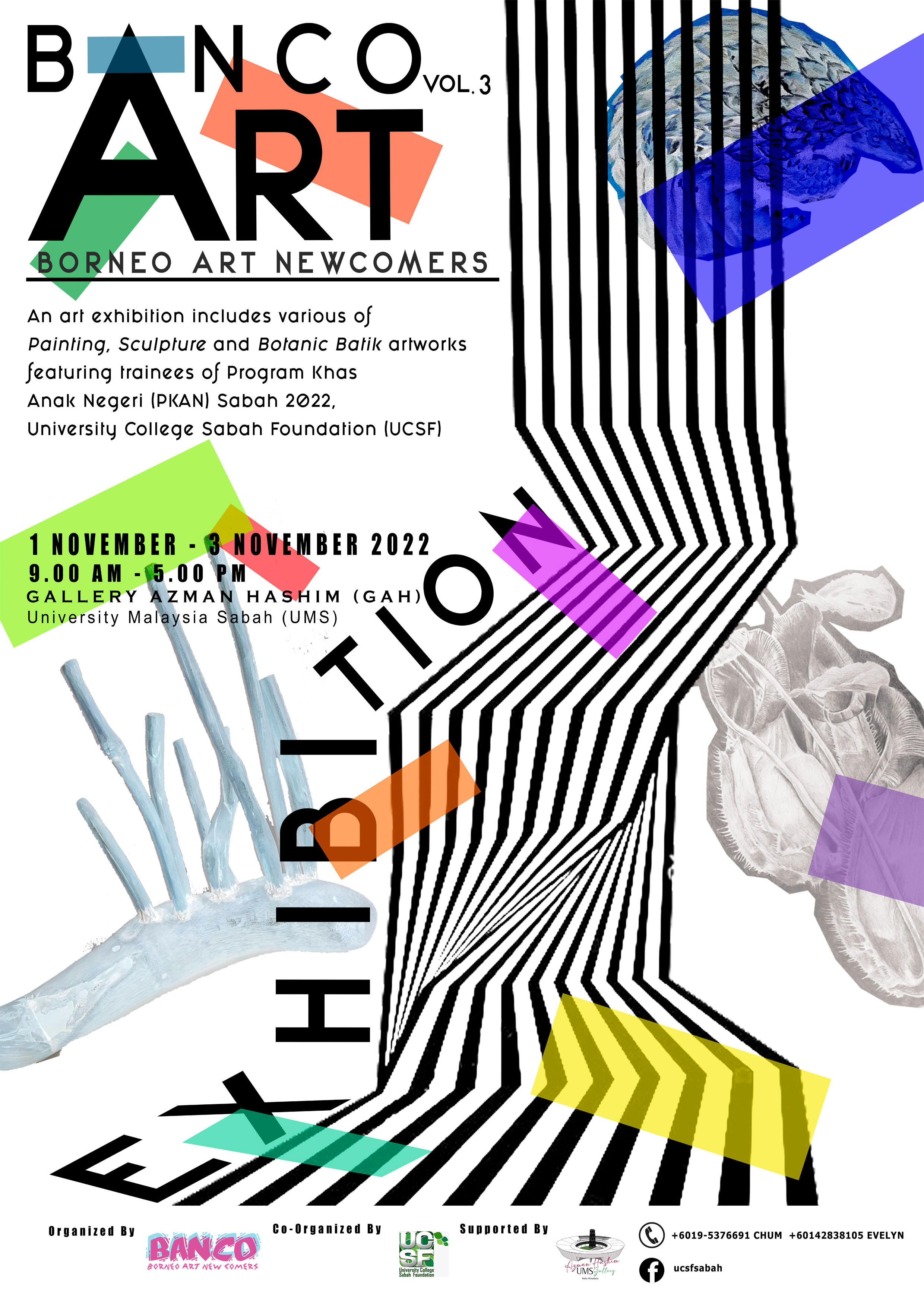 Pameran Borneo ART NEWCOMERS (BANCO VOL.3) daripada University College Sabah Foundation (UCSF) kini berlangsung di ruang Lepa Galeri Azman Hashim UMS bermula 1 - 10 November 2022. Orang ramai dijemput hadir menyaksikan pameran yang memaparkan karya Seni Borneo.
