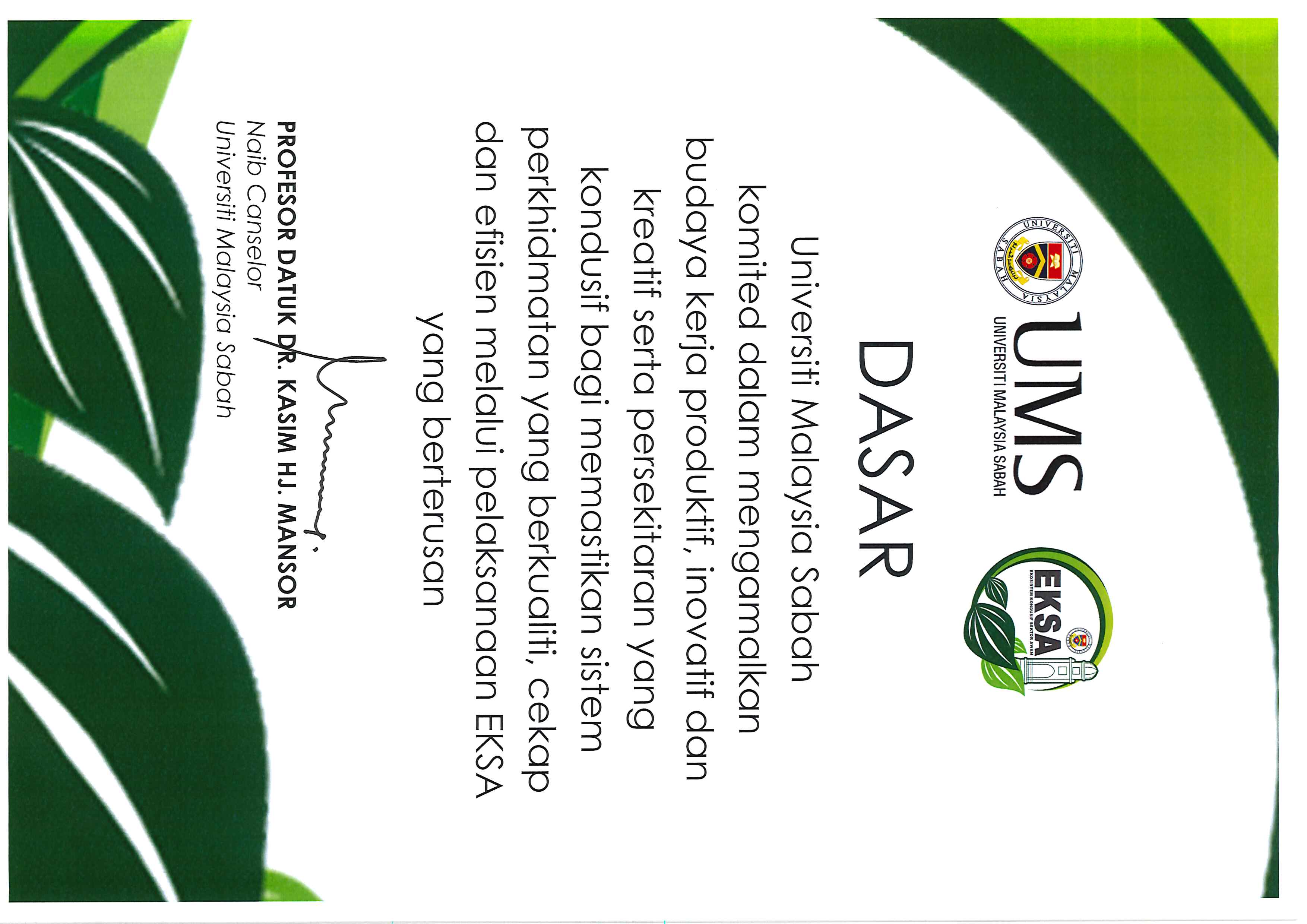 Pengumuman Daripada: Jawatankuasa Induk Promosi EKSA UMS