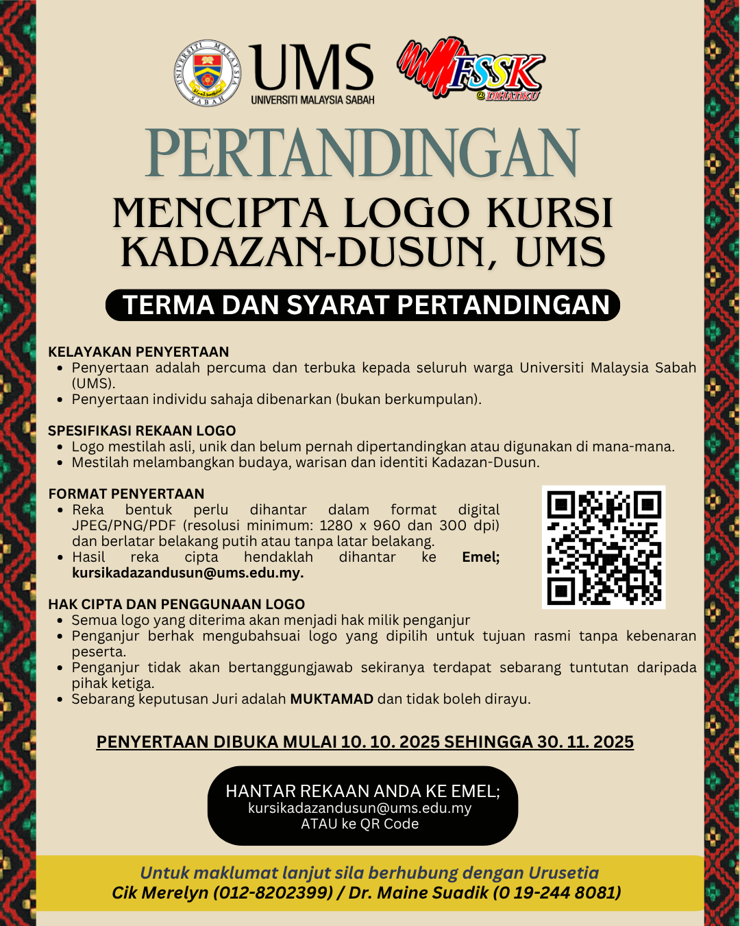 Pihak kami memohon maklum balas daripada YBrs. Prof./Prof. Madya/Dr./Tuan/Puan untuk melengkapkan soal selidik kajian kepuasan pelanggan melalui imbasan kod QR di poster bagi meningkatkan mutu & kualiti perkhidmatan kami.