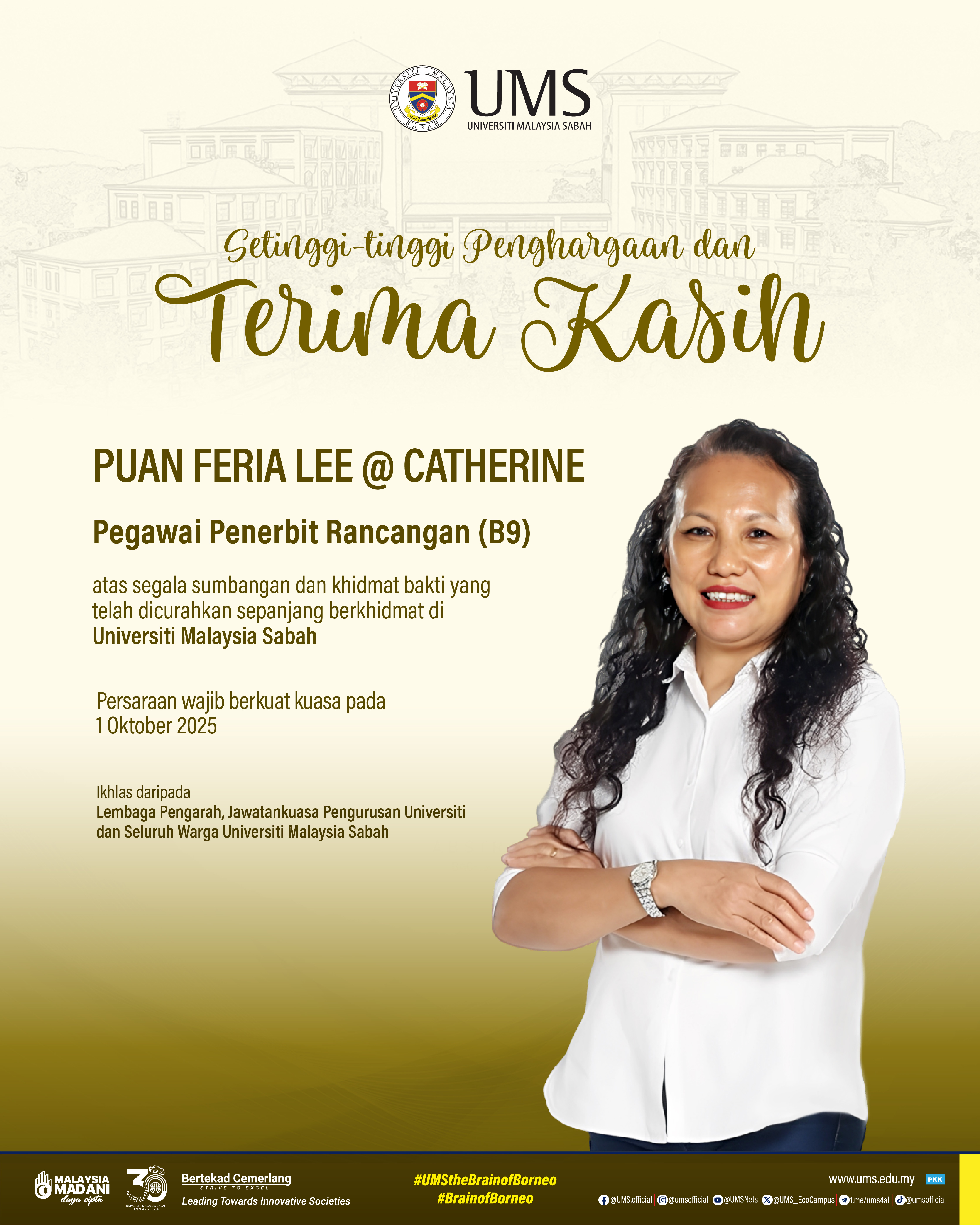Sekalung Penghargaan Dan Ucapan Terima Kasih Kepada Kakitangan UMS Yang Telah Bersara
