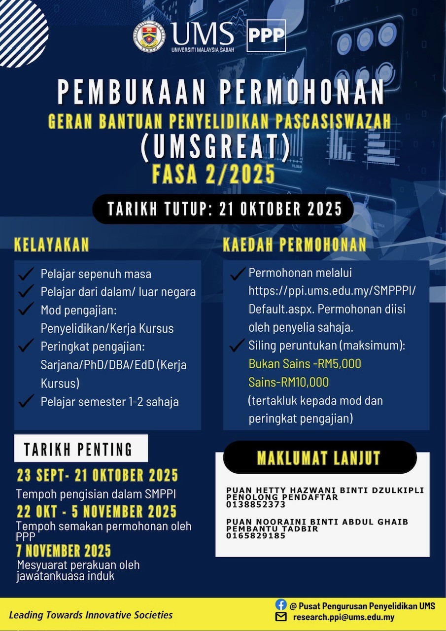 ✅ Penyertaan adalah terbuka kepada semua warga Universiti Malaysia Sabah (UMS)