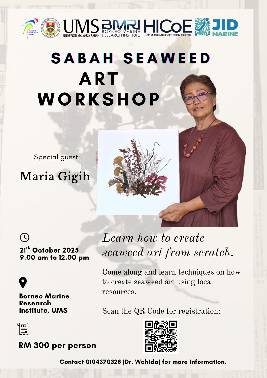 Institut Penyelidikan Marin Borneo akan mengadakan "Sabah Seaweed Art Workshop" pada 21 Oktober 2025 (Selasa).