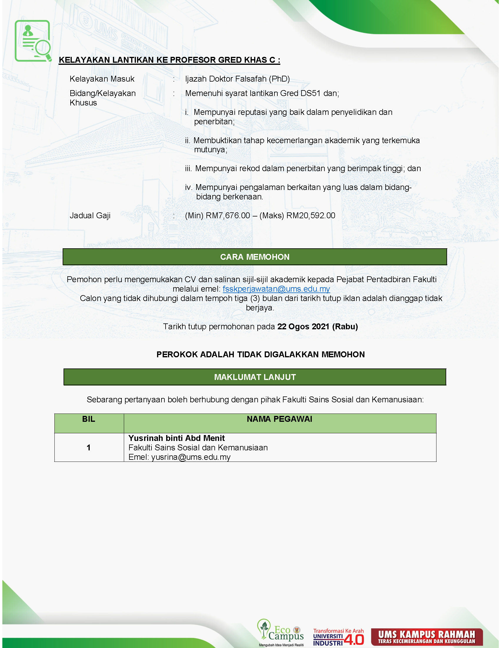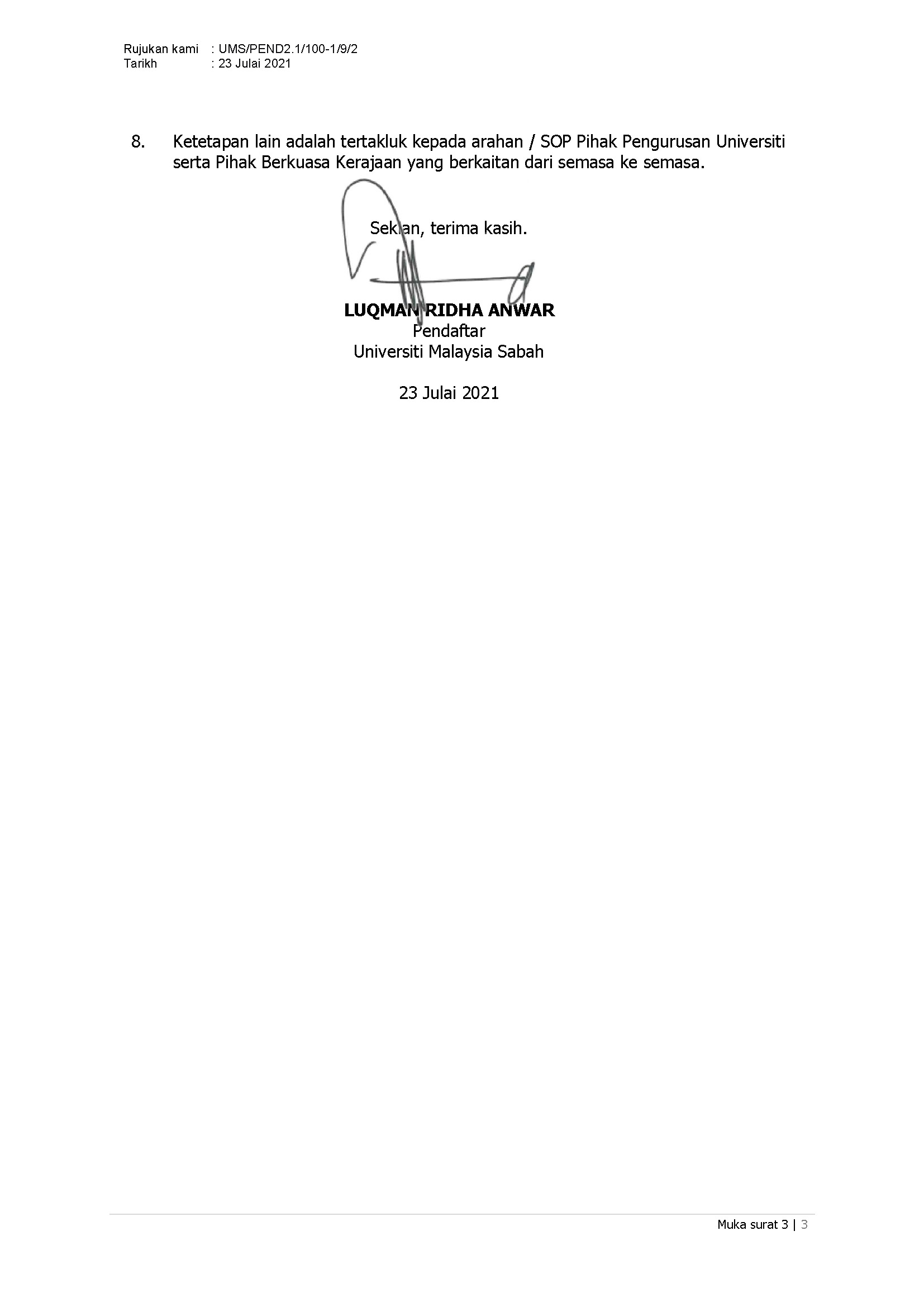 Pengumuman Daripada: Jabatan Pendaftar, UMS