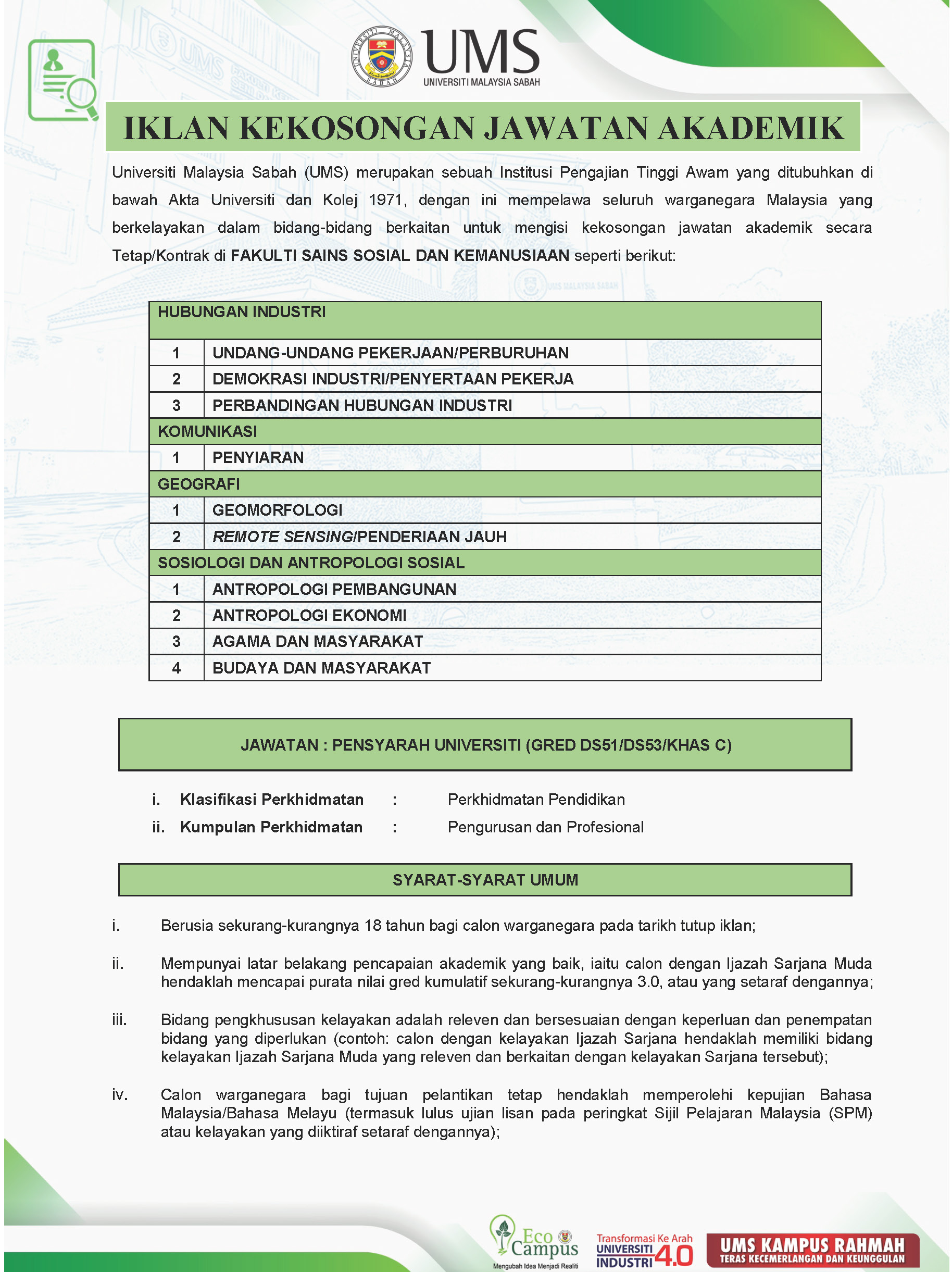 Pengumuman Daripada: Fakulti Sains Sosial Dan Kemanusiaan, UMS