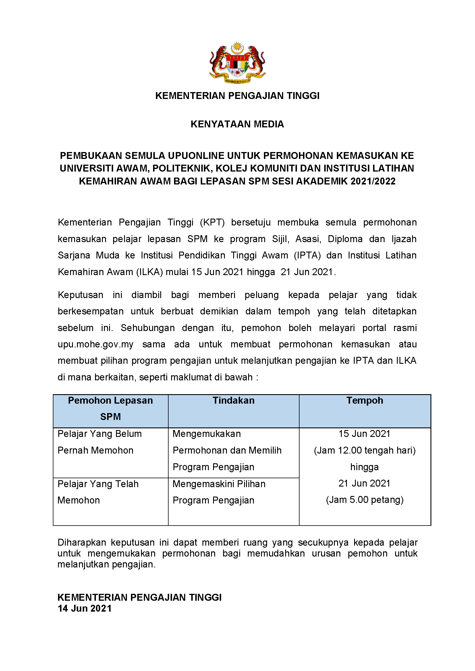 Pengumuman Daripada: Bahagian Perkhidmatan Akademik, UMS
