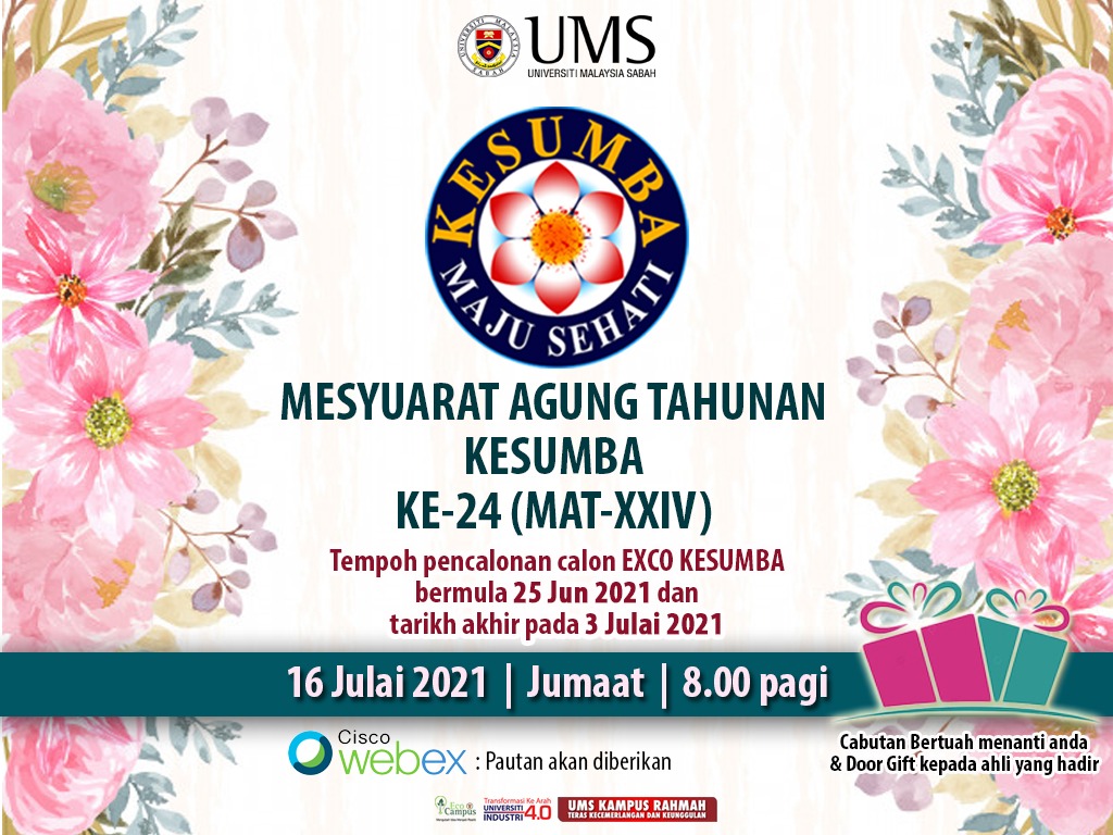 2. Sukacita dimaklumkan bahawa Mesyuarat Agung Kelab Suri Rumah Dan Staf Wanita Universiti Malaysia Sabah kali ke-24 (MAT KESUMBA) akan diadakan mengikut ketetapan berikut: