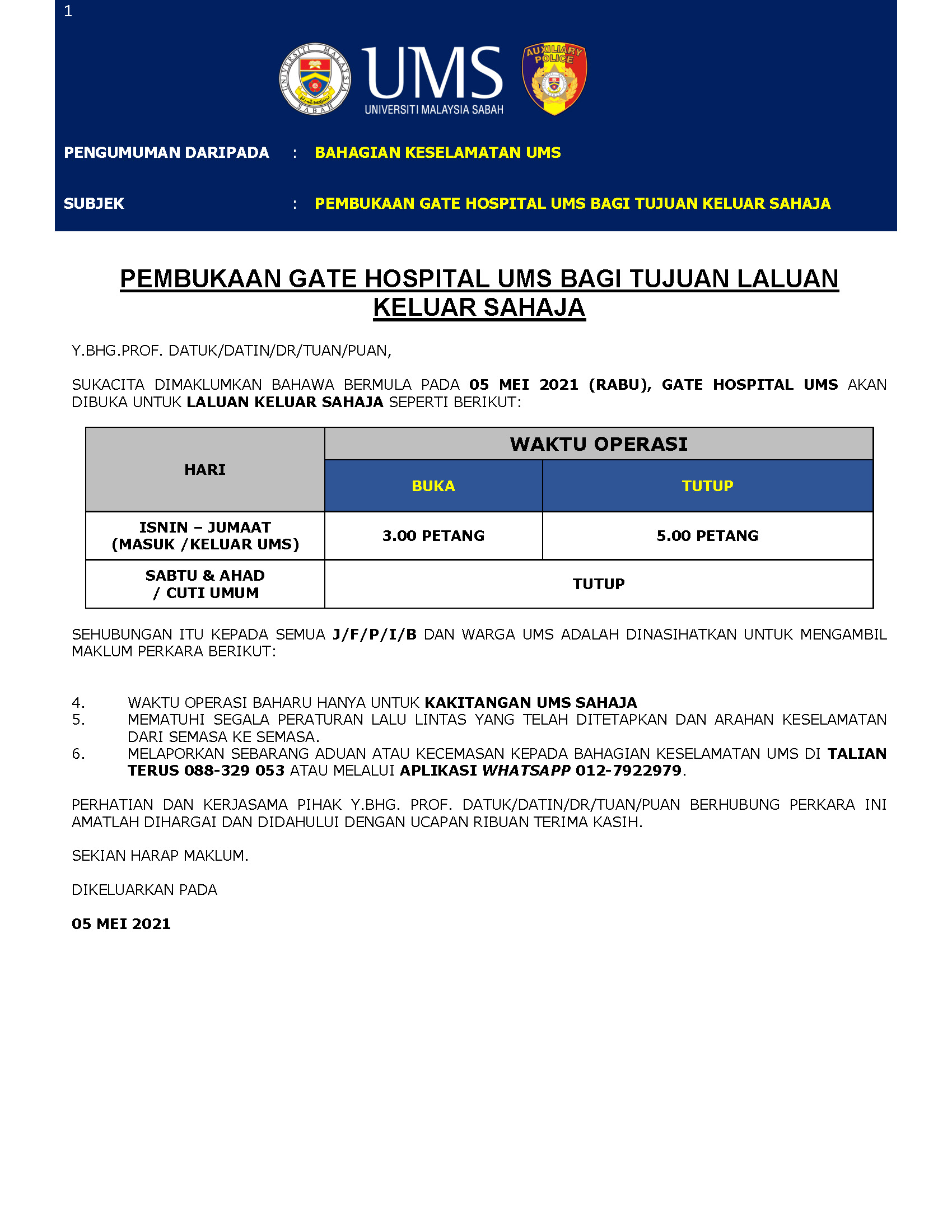 Tarikh: 7 Mei 2021 (Jumaat)