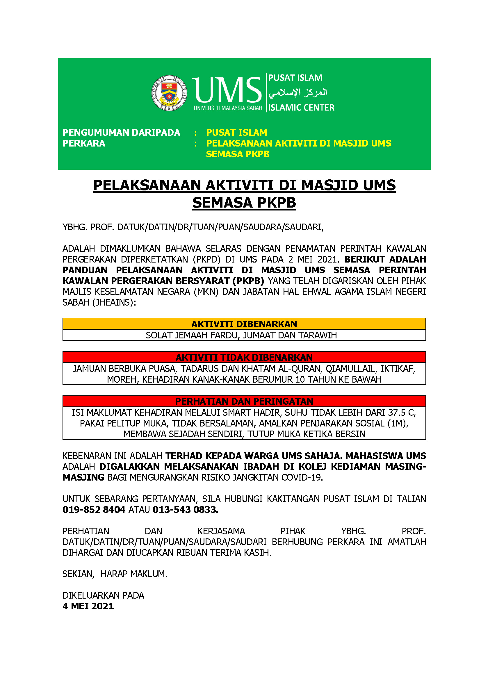 Pengumuman Daripada: Jabatan Pendaftar, UMS