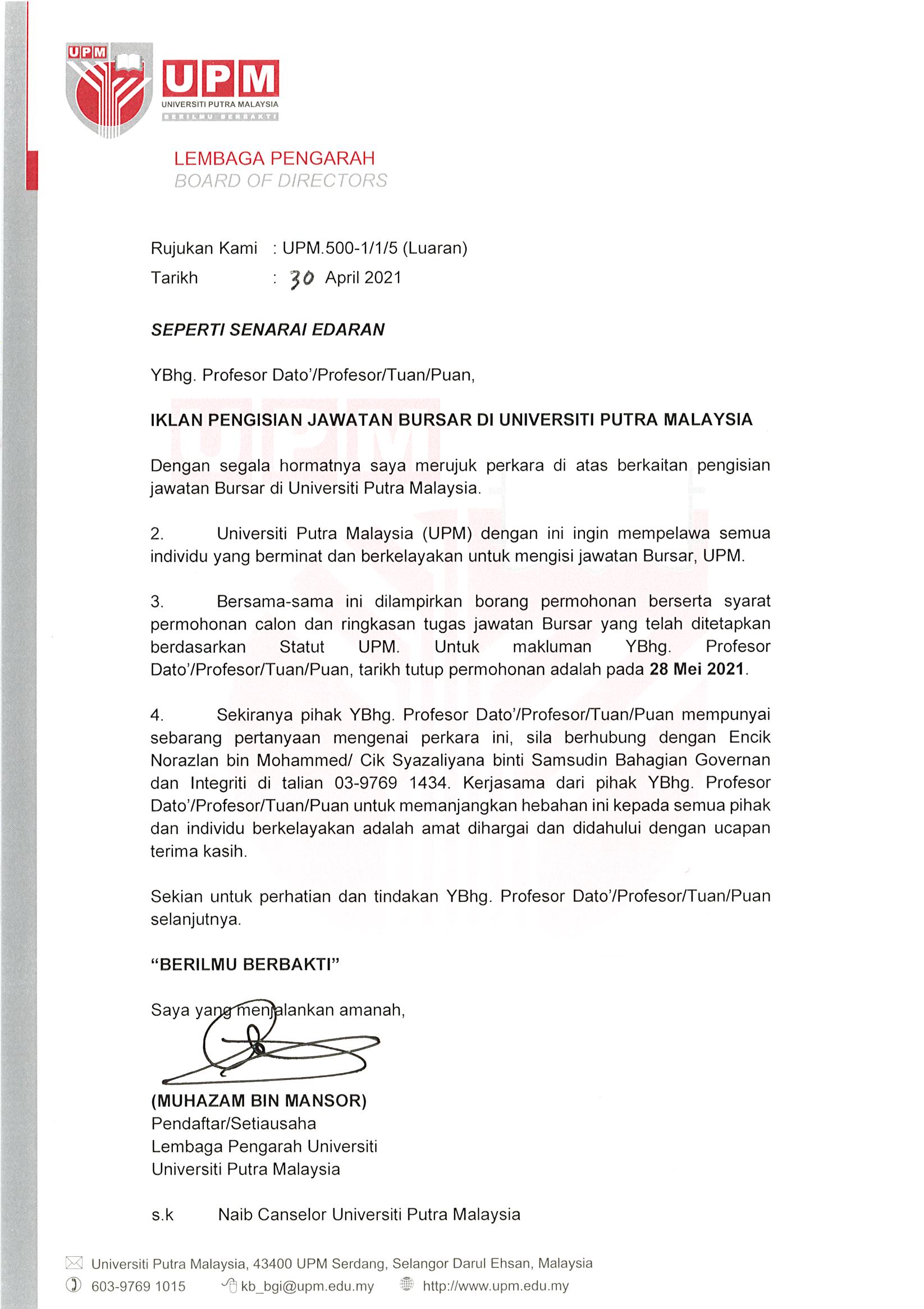 Iklan Pengisian Jawatan Bursar Di Universiti Putra Malaysia (.pdf)