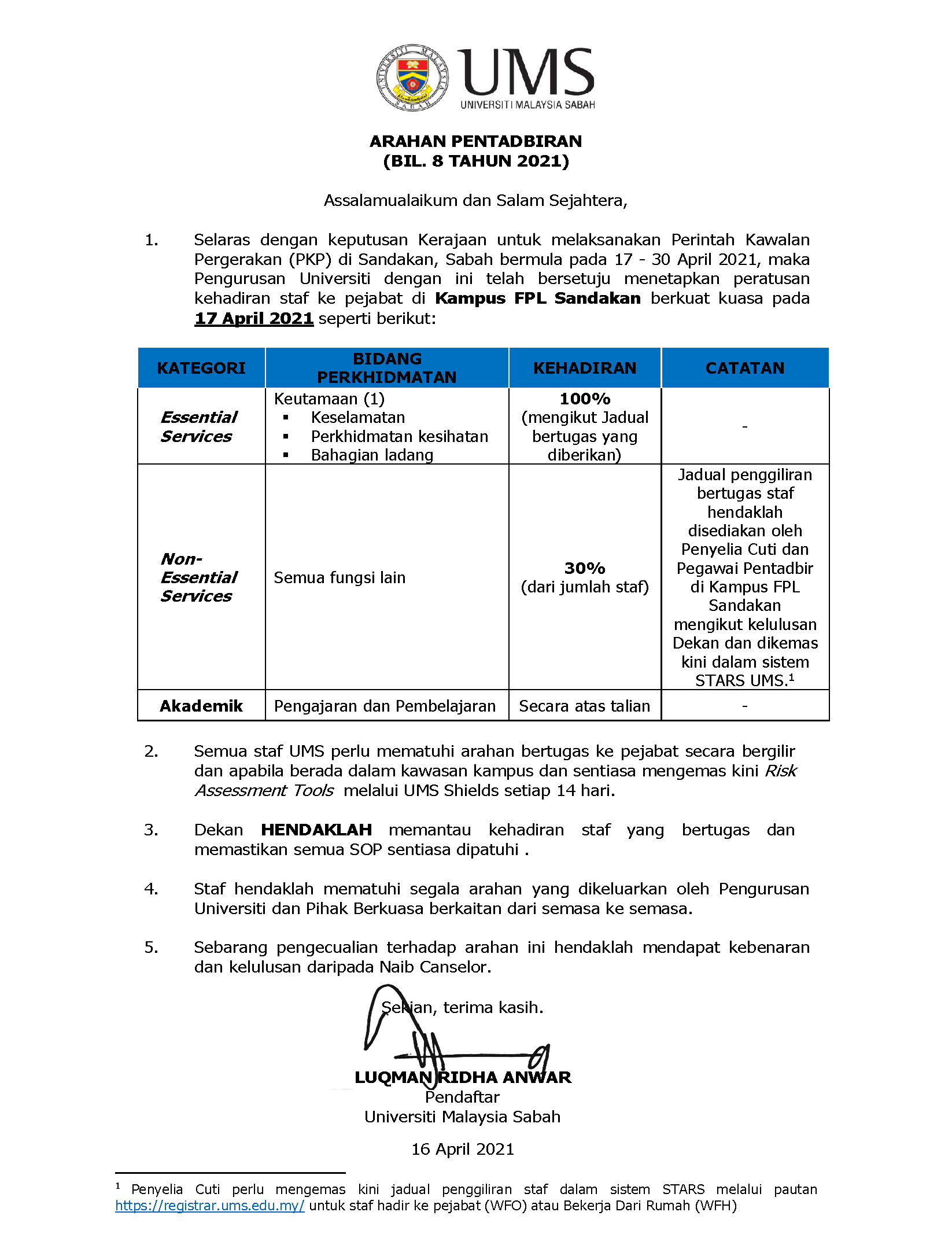 Pengumuman Daripada: Jabatan Pendaftar, UMS