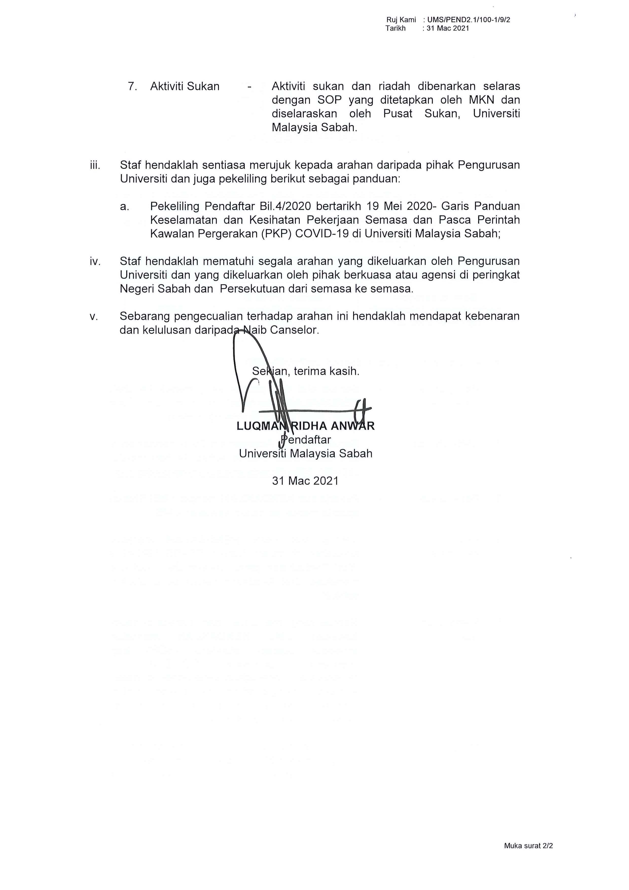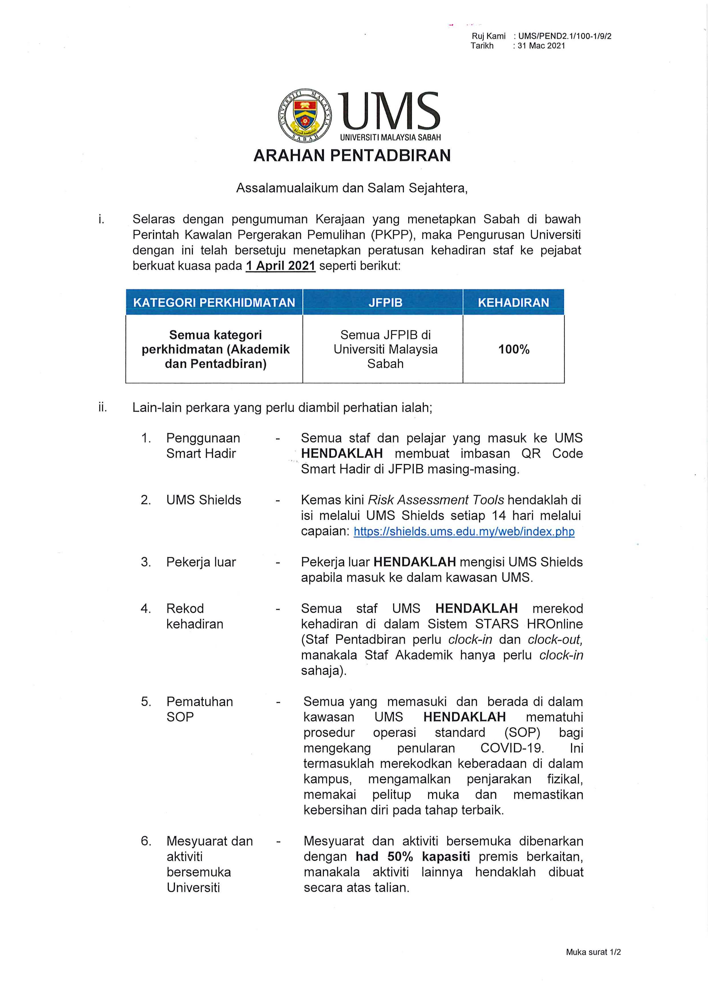 Pengumuman Daripada: Bahagian Perkhidmatan Akademik, Jabatan Pendaftar, UMS