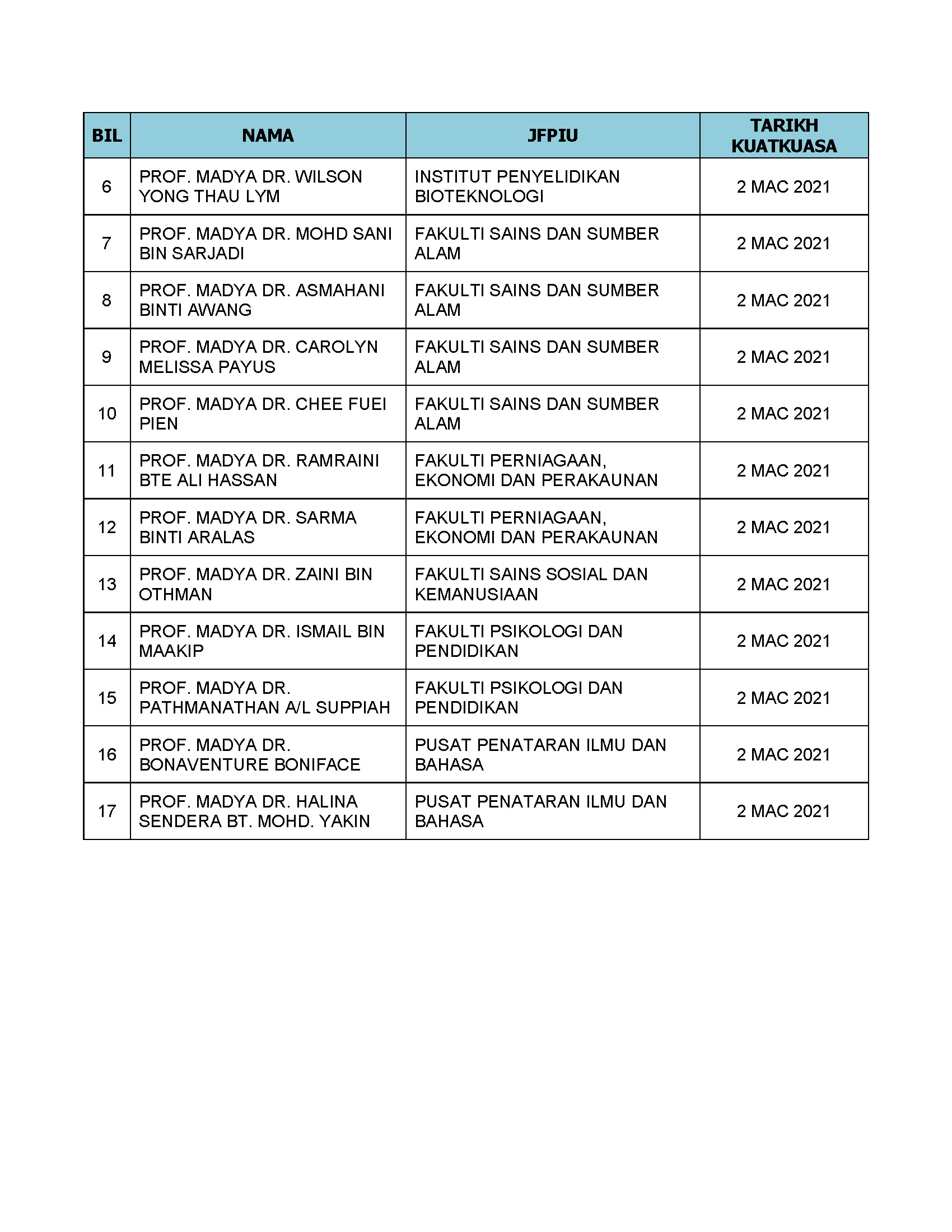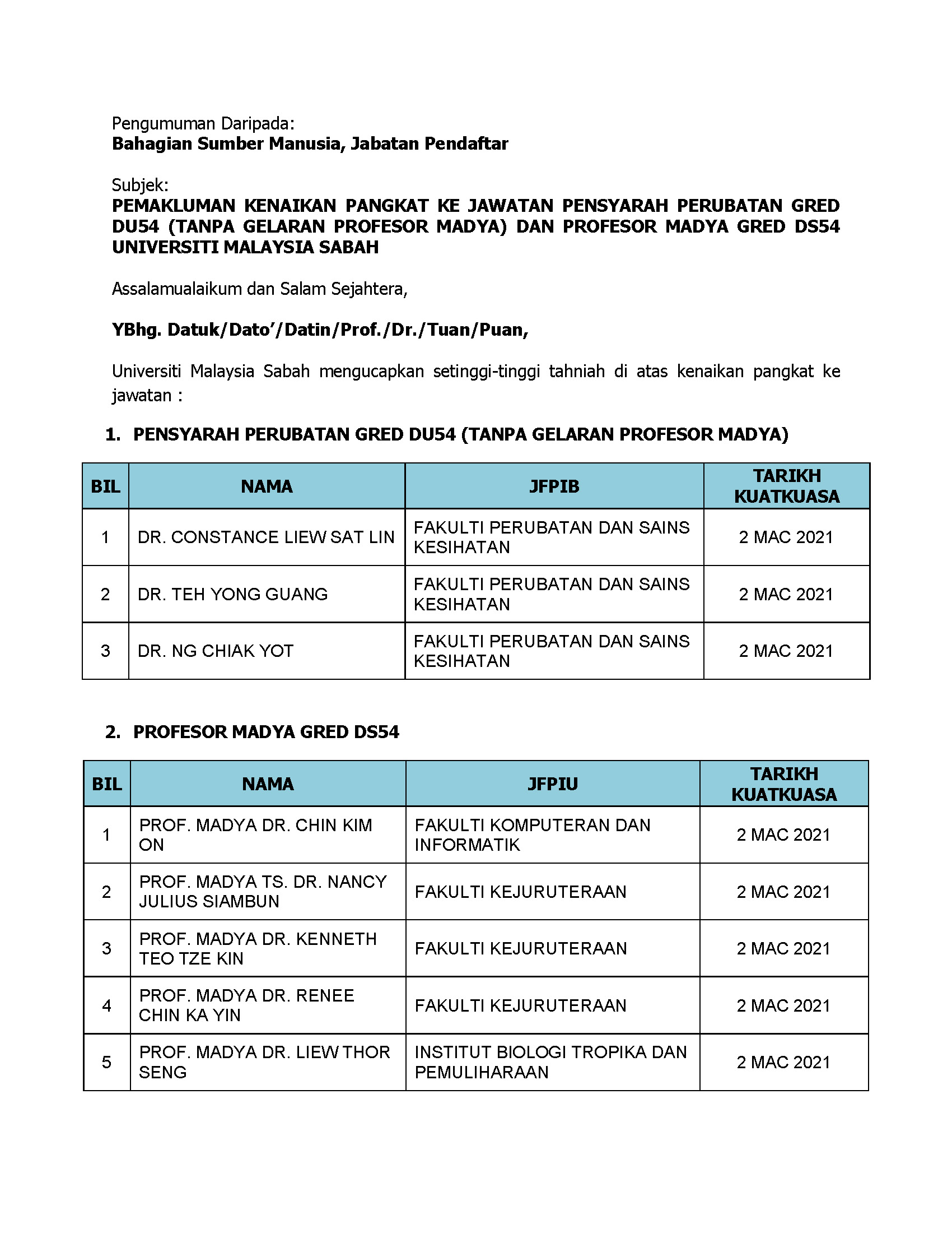 Pengumuman Daripada: Fakulti Sains dan Sumber Alam, UMS