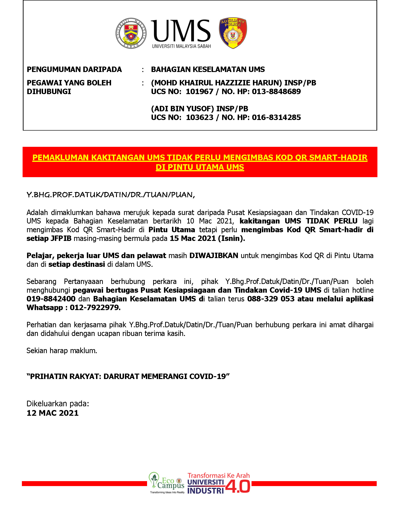 Pengumuman Daripada: Pusat Pengurusan Penyelidikan dan Inovasi, UMS