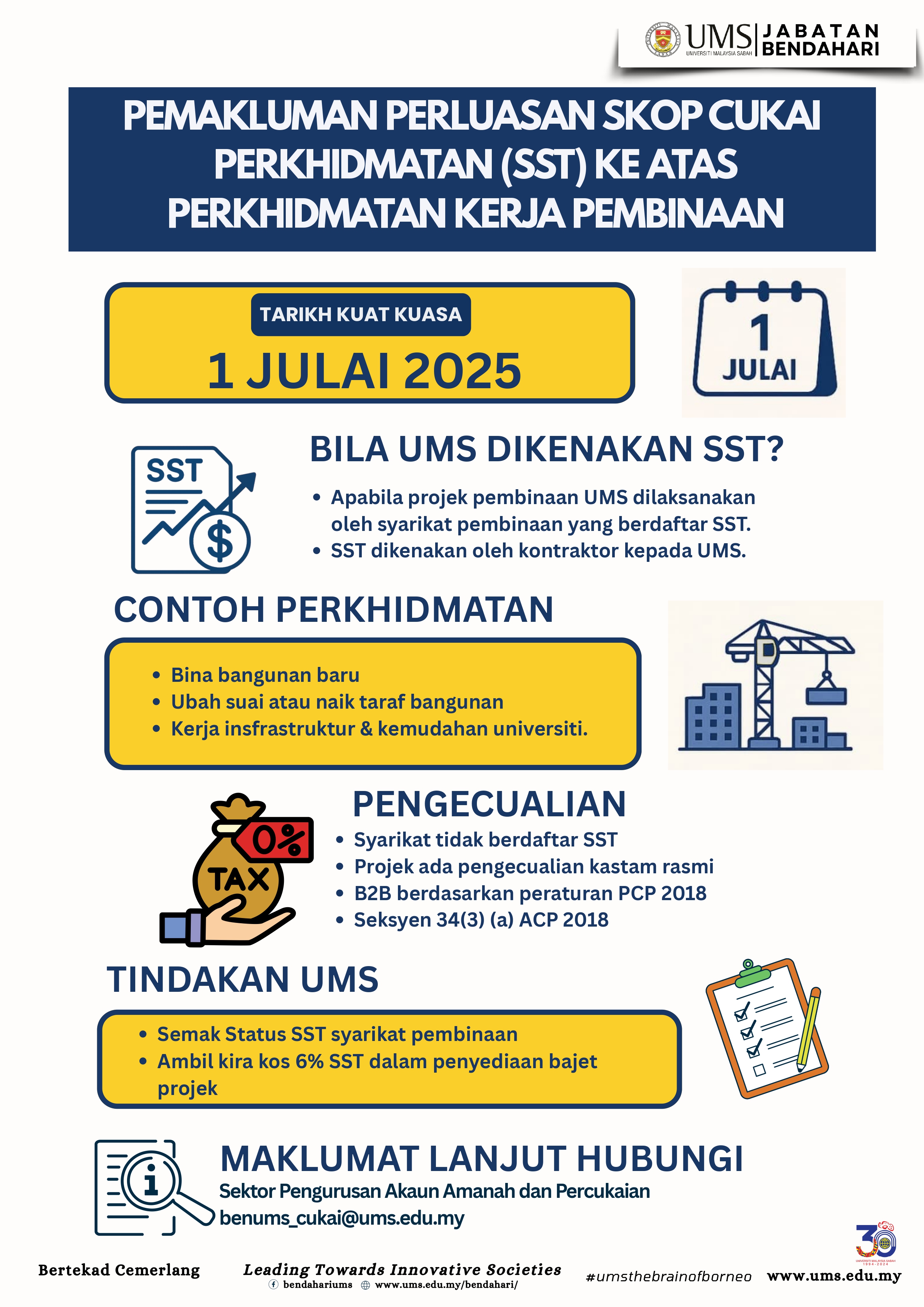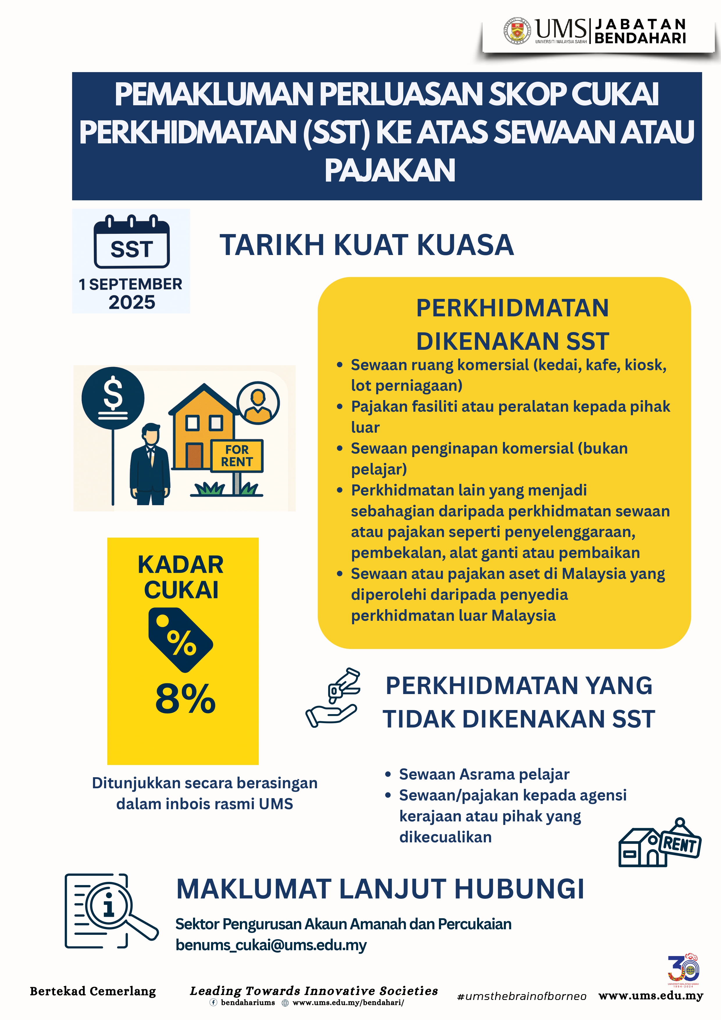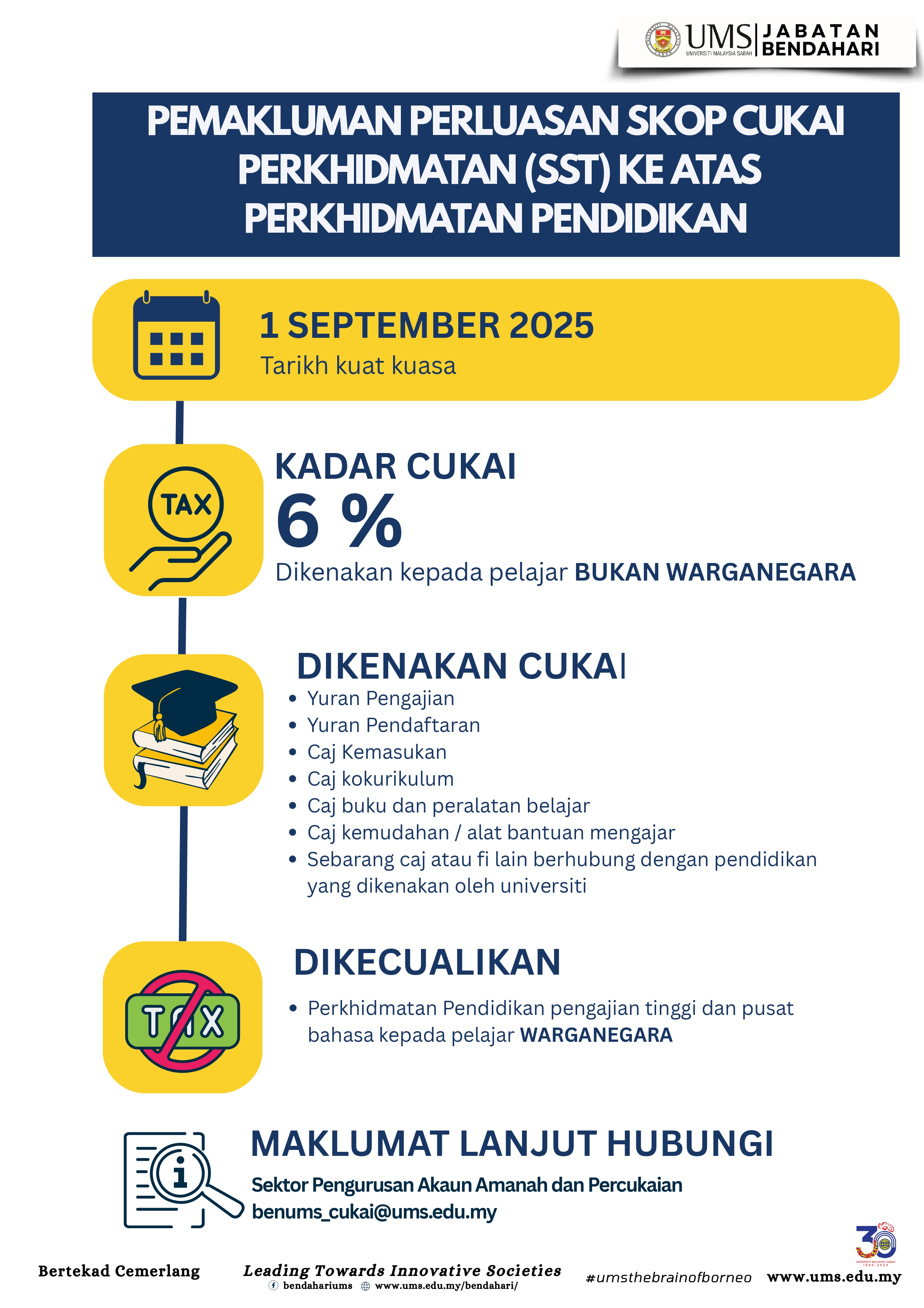 | Pemakluman Pelaksanaan Cukai Perkhidmatan (SST) Ke Atas Yuran Pengajian Pelajar Bukan Warganegara dan Perkhidmatan Sewaan Di UMS |