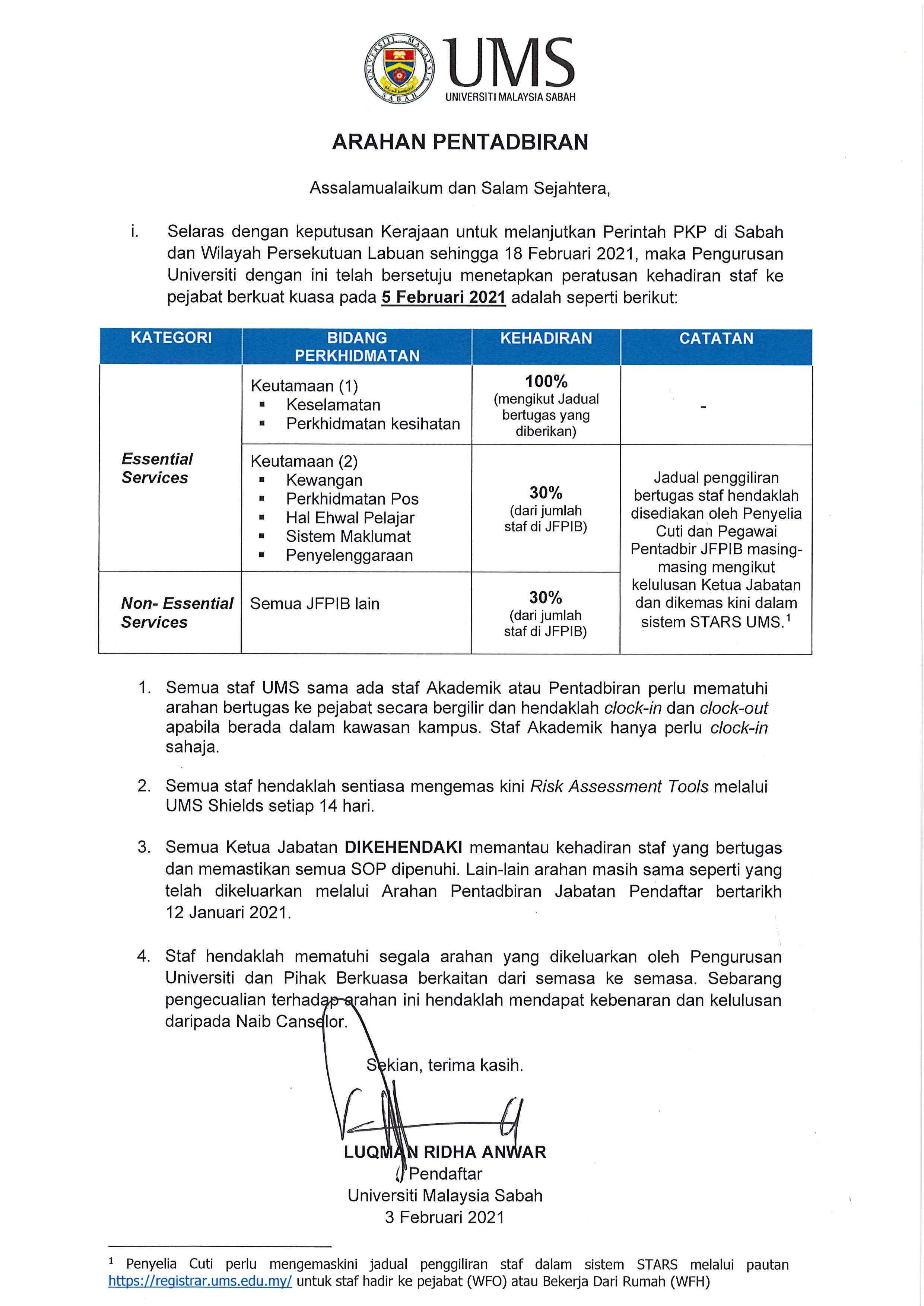 Pengumuman Daripada: Jabatan Pendaftar, UMS