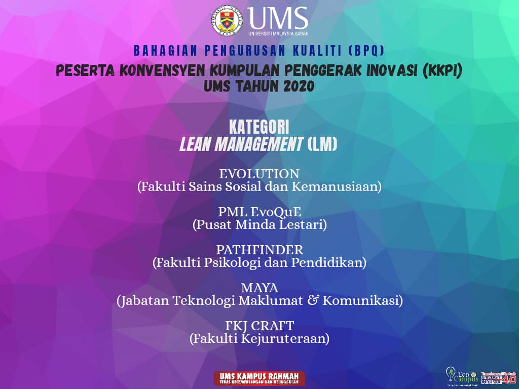 Konvensyen Kumpulan Penggerak Inovasi (KKPI) UMS Tahun 2020 memberi peluang kepada kumpulan dalam mempersembahkan projek penambahbaikan mereka. Melalui projek yang dihasilkan, mampu memberikan impak yang positif kepada JFPIB dan UMS secara keseluruhannya serta meningkatkan imej ke tahap yang lebih tinggi.