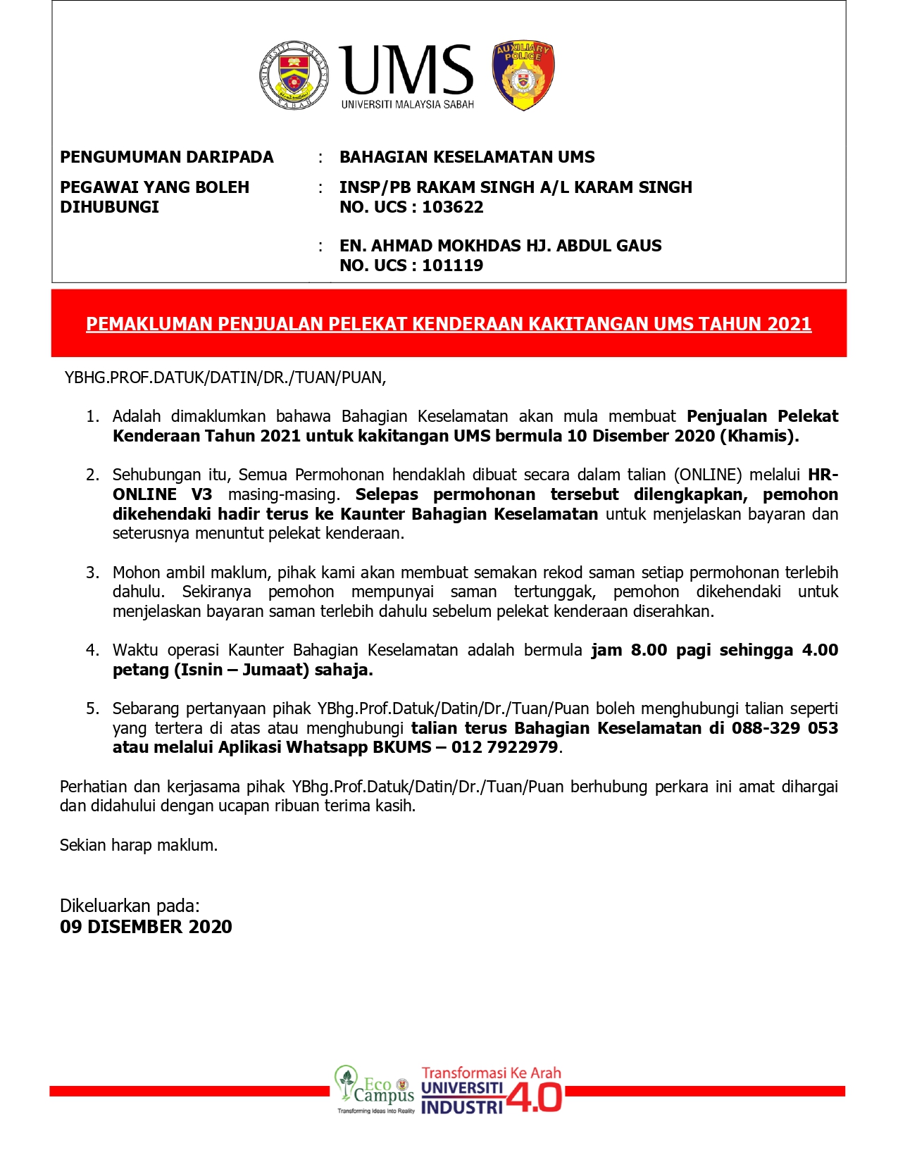 Please be informed that the access to the Online Payment UMS System closed temporarily due for maintenance work.