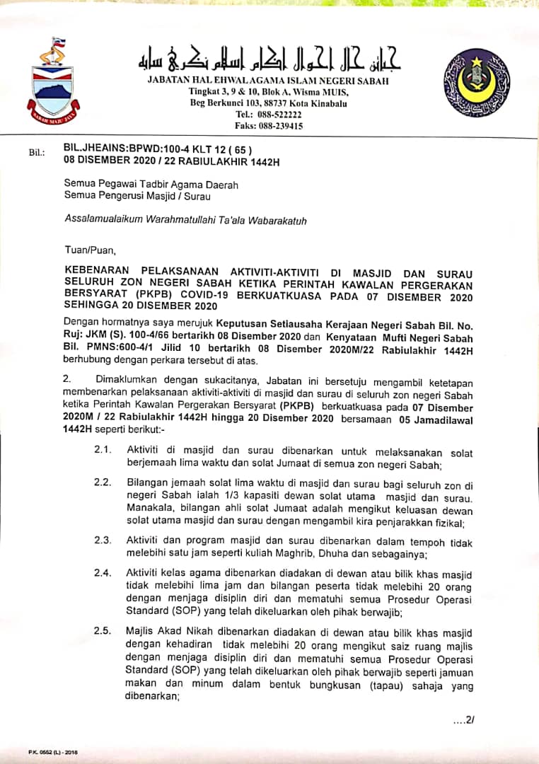 Makluman Kebenaran Penggunaan Ruang Bagi Solat Fardhu Berjemaah Dan Solat Jumaat UMS