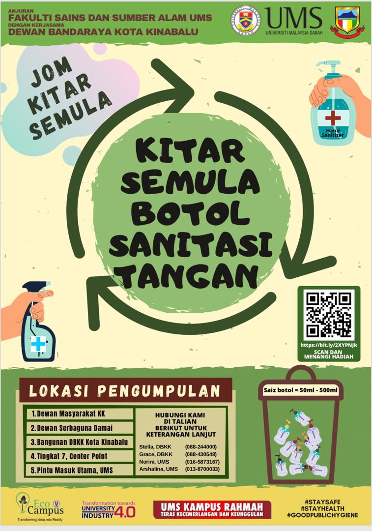 Subjek: Projek Kitar Semula Botol Sanitasi Tangan Anjuran FSSA, UMS dengan kerjasama DBKK