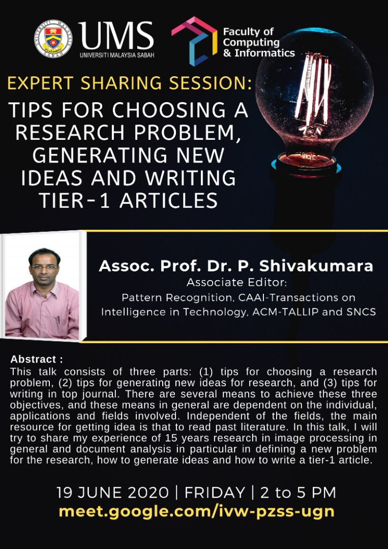 Subjek : Expert Sharing Session: Tips For Choosing a Research Problem, Generating New Ideas and Writing Tier-1 Articles