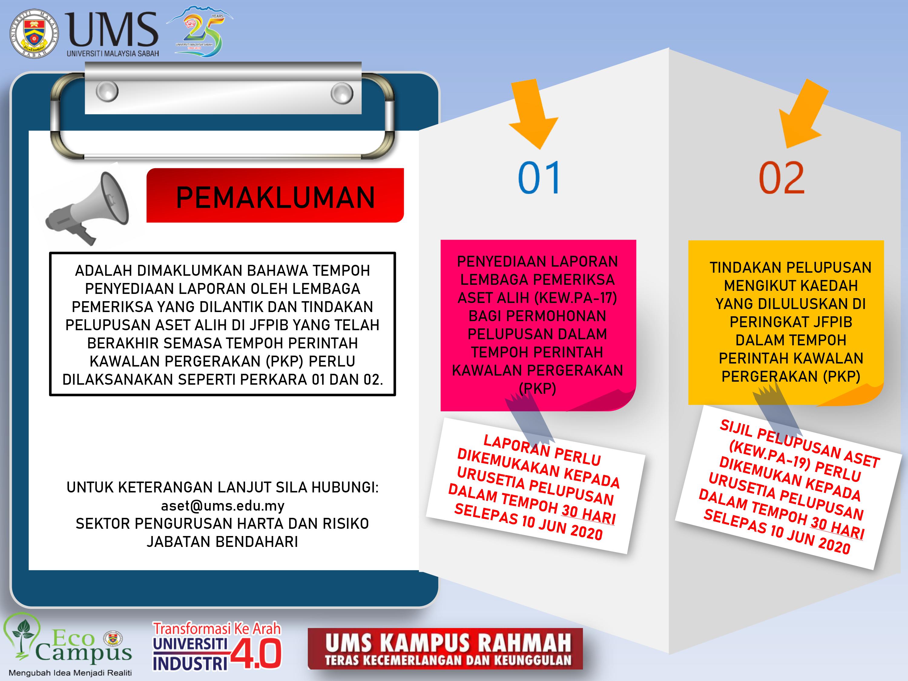 - Bersama-sama ini dikemukakan surat pemakluman pembatalan peperiksaan tersebut daripada Jabatan Akauntan Negara Malaysia (JANM) untuk rujukan pihak tuan/puan. Sebarang pertanyaan pihak tuan/puan boleh menghubungi pihak urusetia, Encik Mohd Nizam Bin Abd Muttalib ditalian ext : 103337 atau 0138554373.