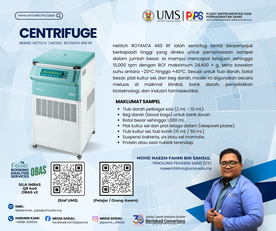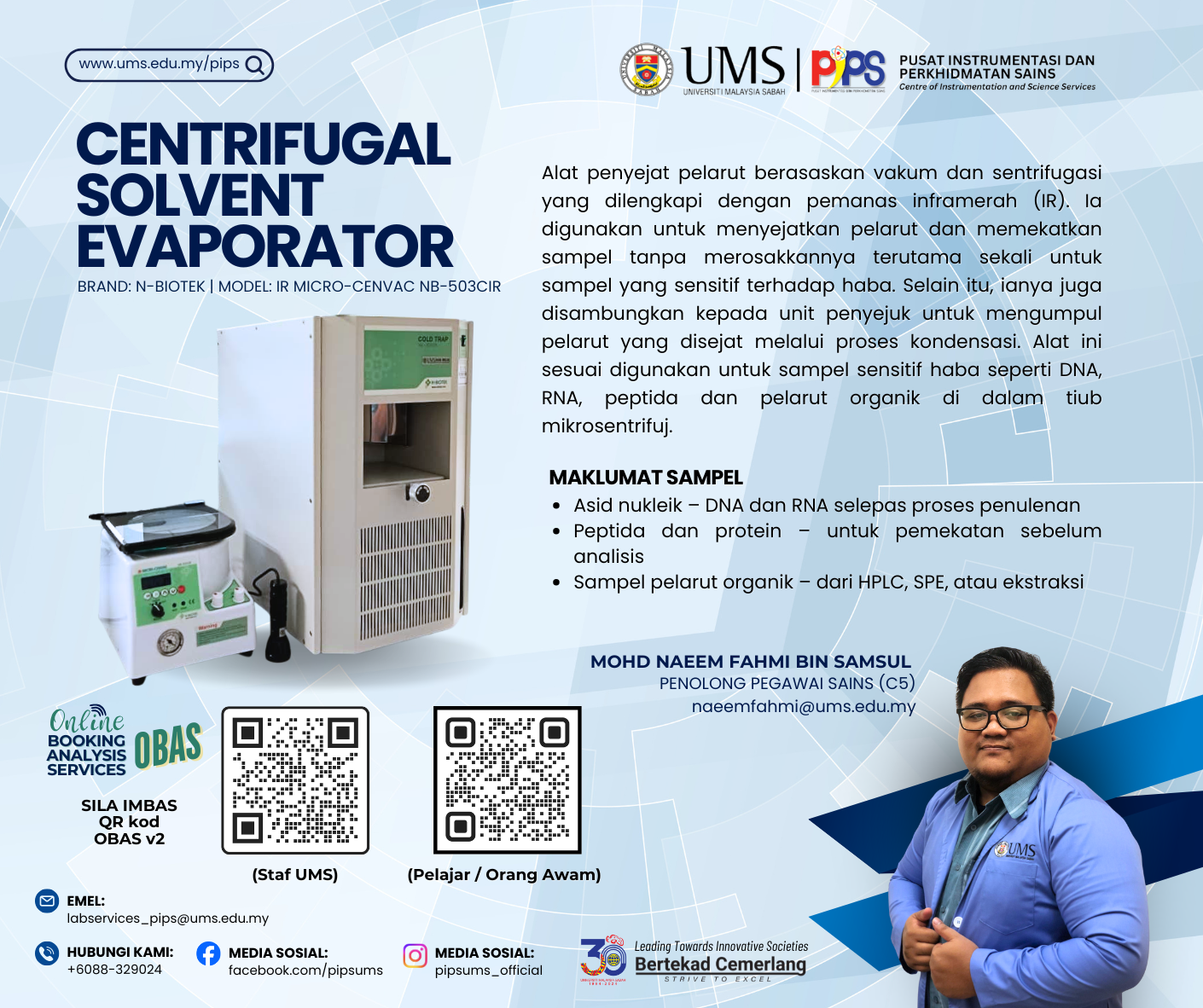 Sukacita dimaklumkan bahawa poster hebahan berkaitan perkhidmatan instrumen yang disediakan oleh Pusat Instrumentasi dan Perkhidmatan Sains (PIPS), Universiti Malaysia Sabah dilampirkan bersama untuk makluman dan rujukan YBhg. Prof./Prof. Madya Dr./Dr./Tuan/Puan.