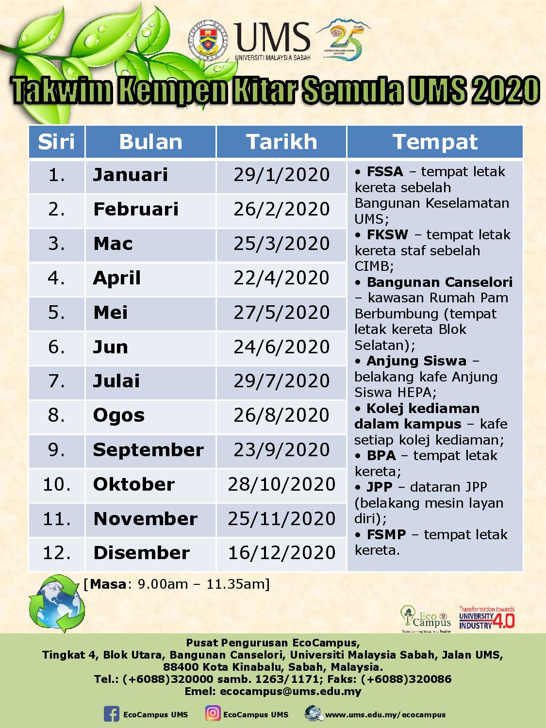 Subjek: Takwim Kempen Kitar Semula UMS 2020