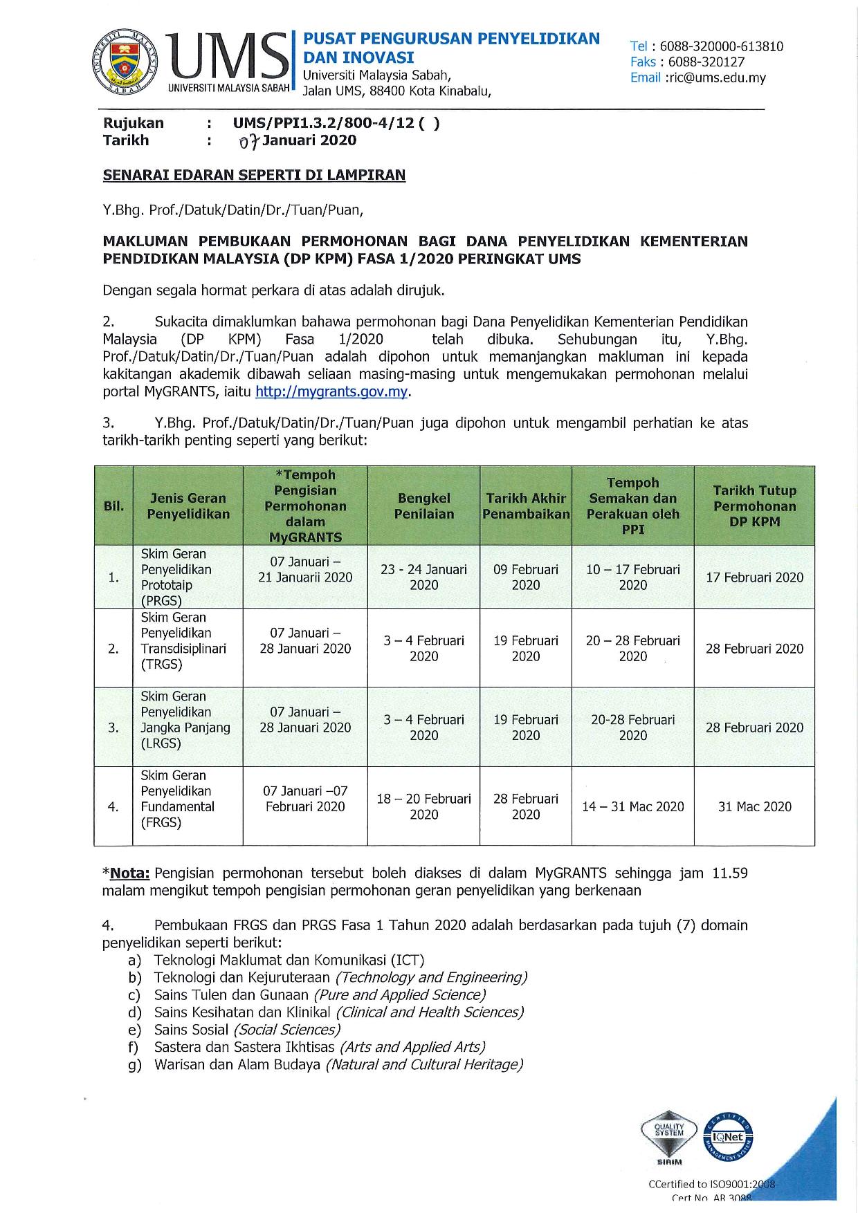 The CMEs will be given by FPSK staff and opened to all UMS staff. A list of speakers among FPSK lecturers will be appointed later.