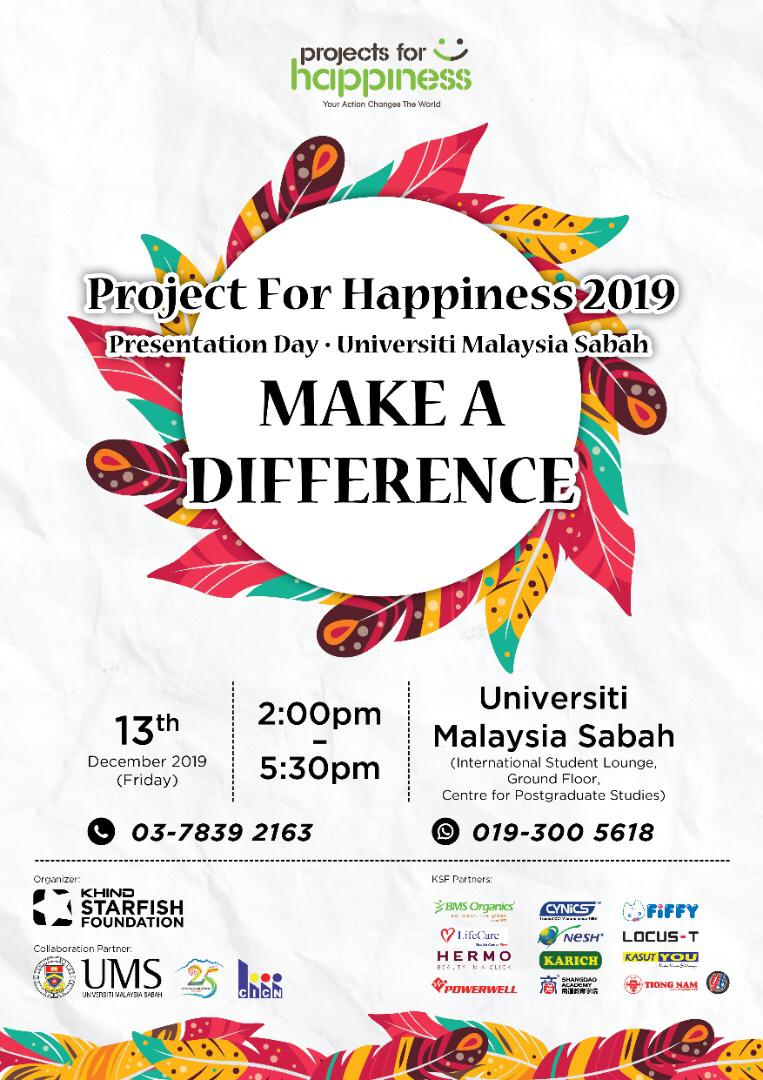 Projects For Happiness 2019 Presentation Day akan diadakan pada ketetapan seperti berikut: